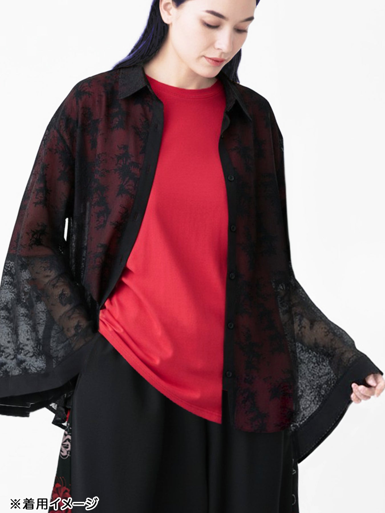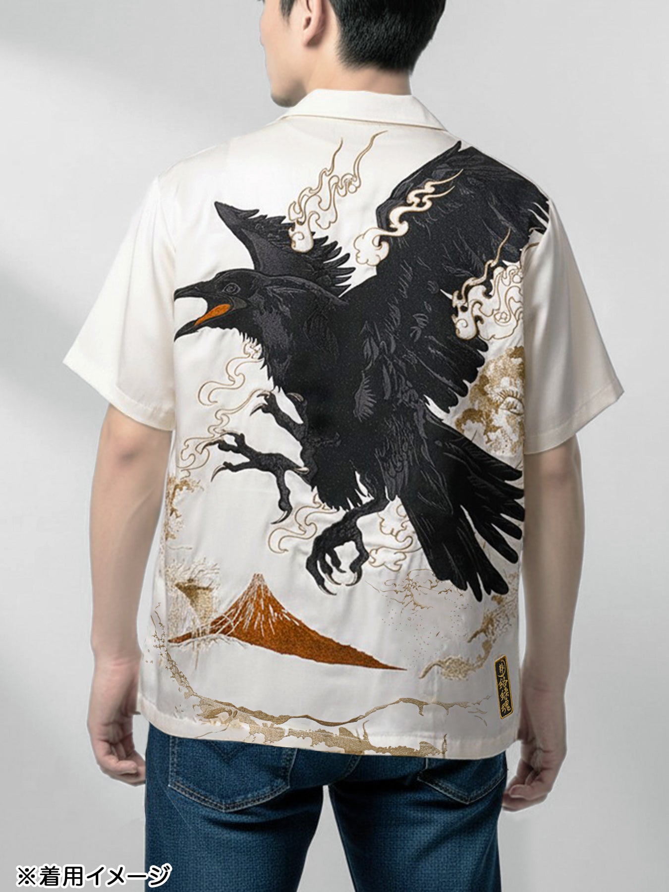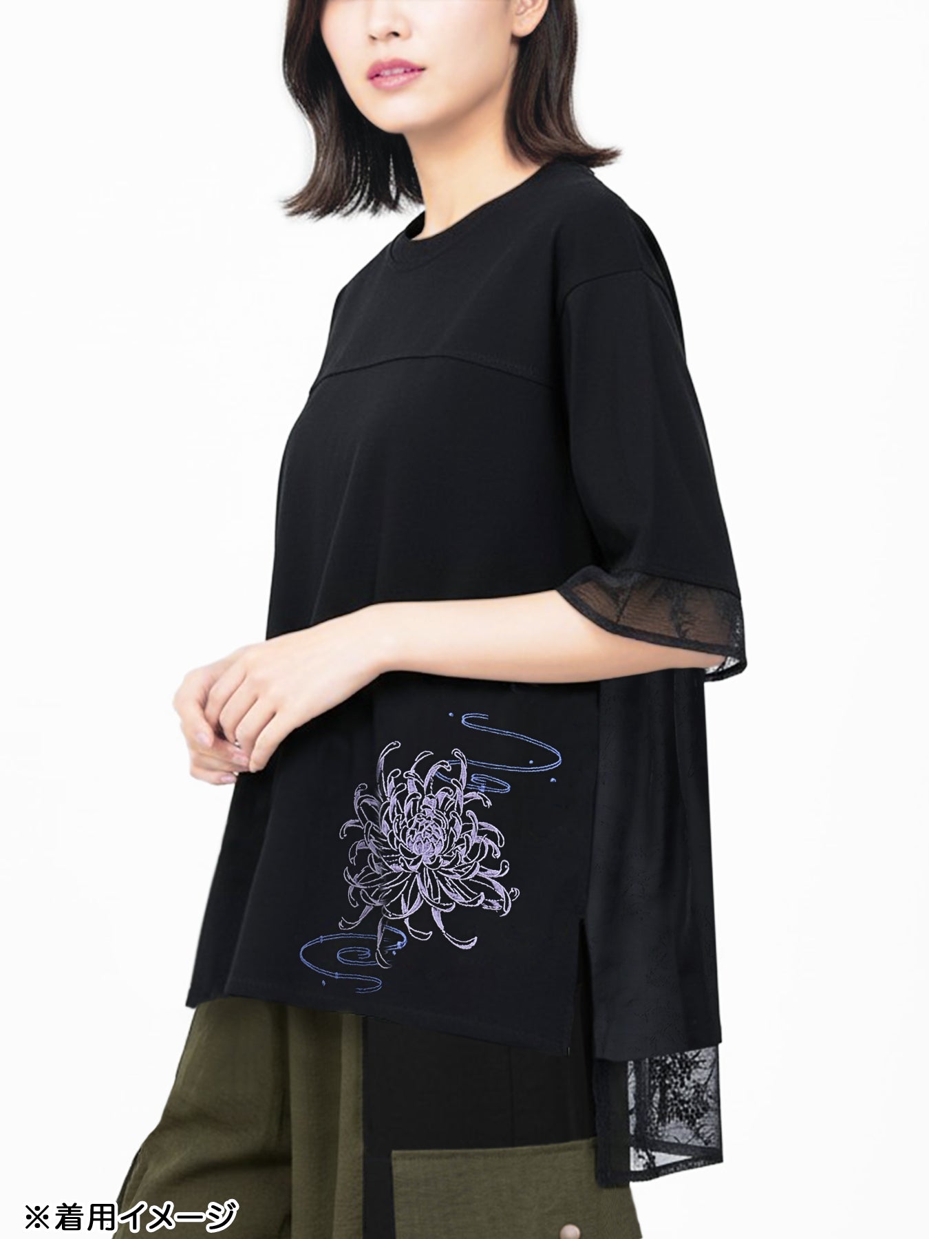 “九尾と牡丹”刺繍入り半袖Tシャツ