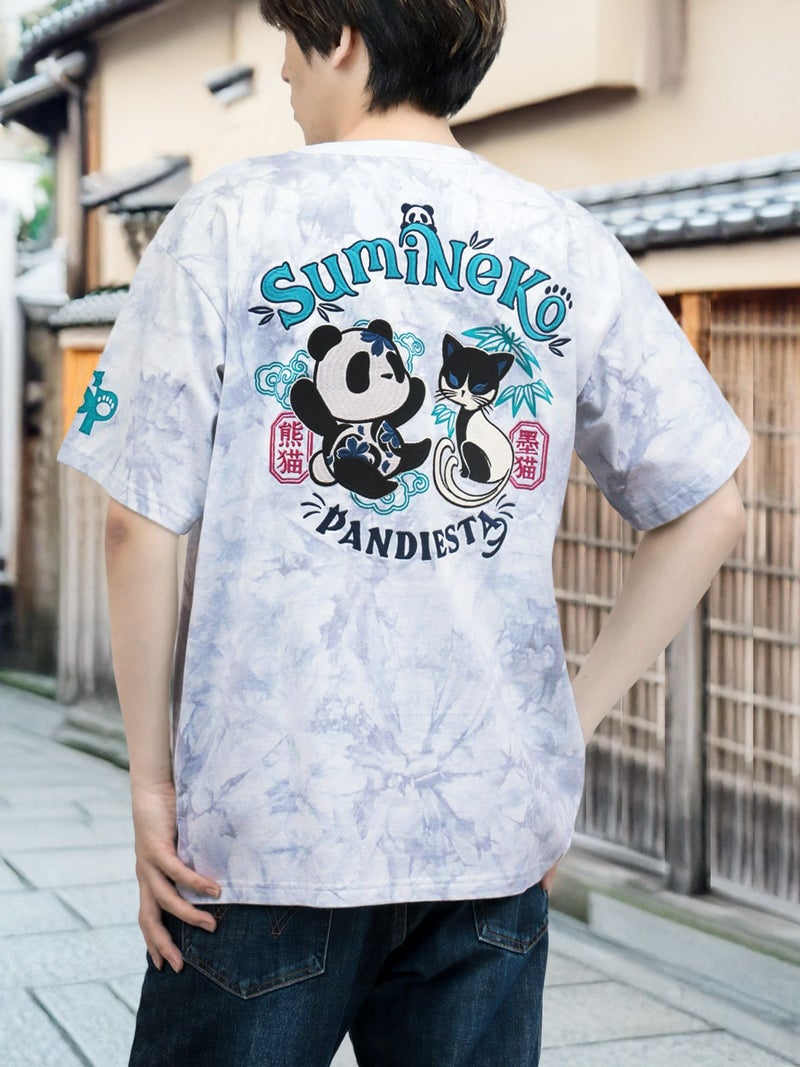 - 【SUMINEKO×PANDIESTA JAPAN】“墨パンダとハチワレ猫”刺繍入りTシャツ