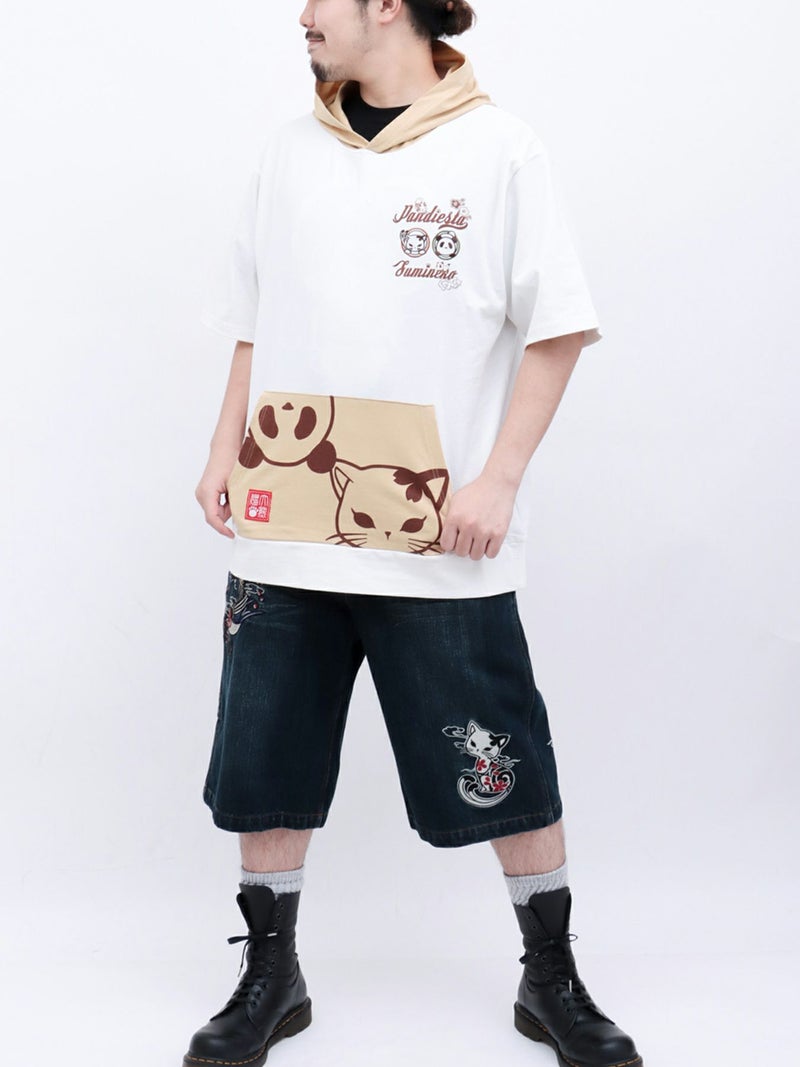 - 【SUMINEKO×PANDIESTA JAPAN】“仲良し”配色切替BIGシルエット 半袖プルパーカー