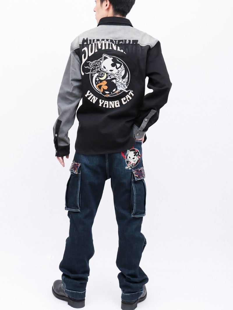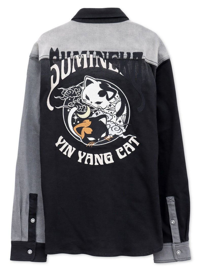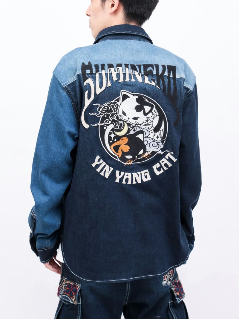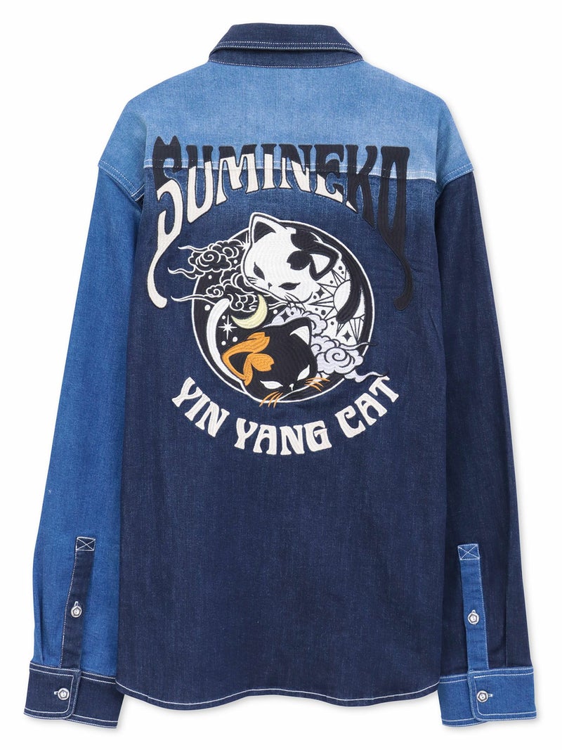 - 【SUMINEKO】“YIN YANG CAT”総刺繍 切替ストレッチデニムシャツ