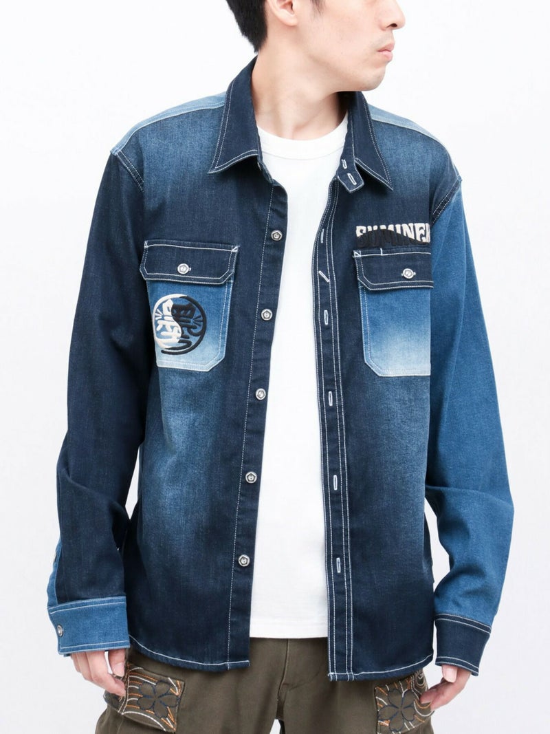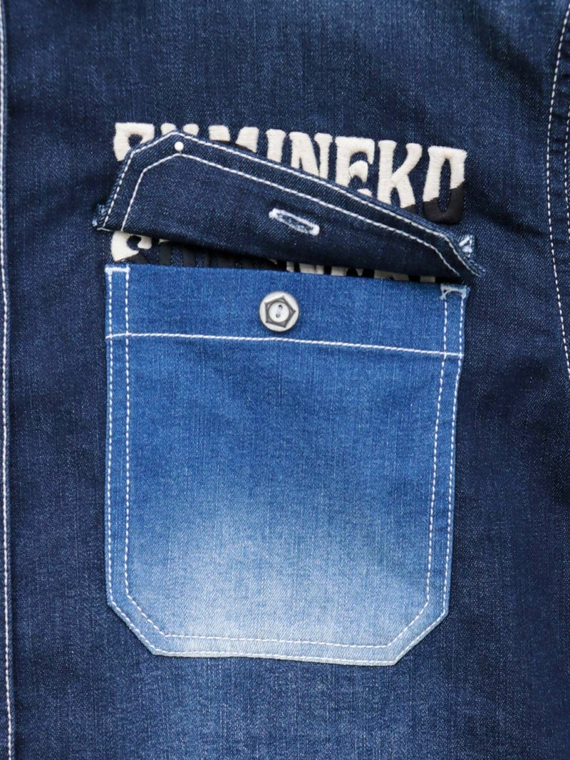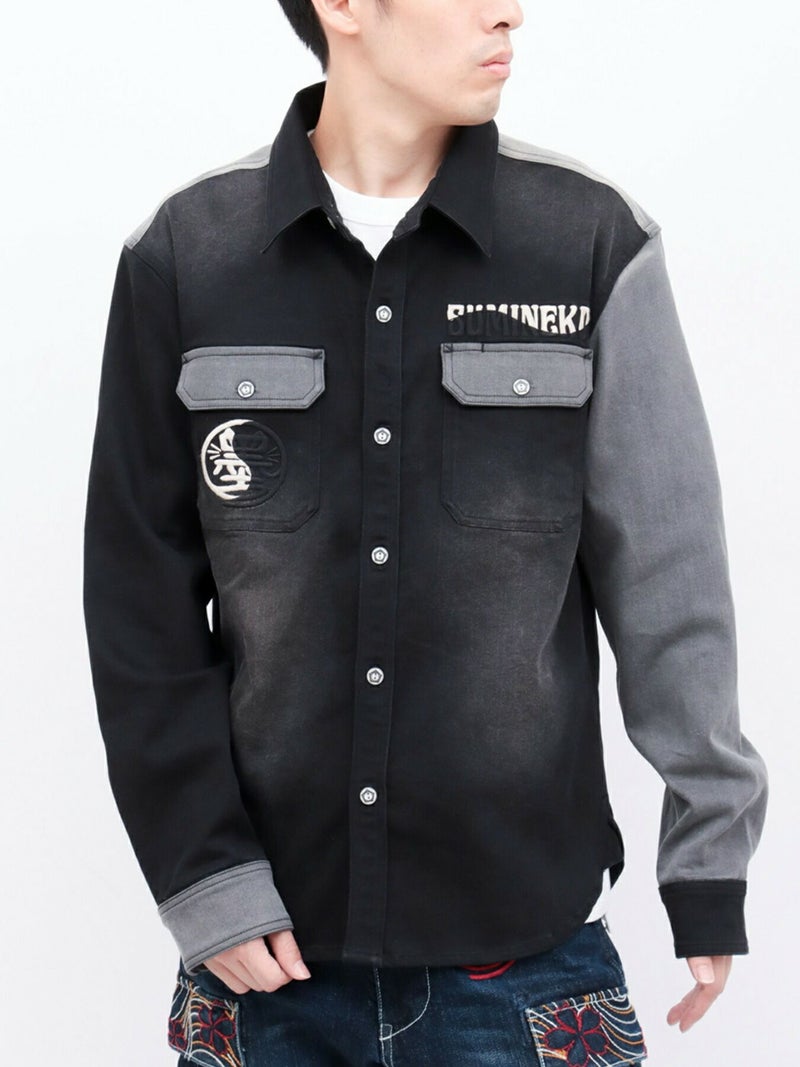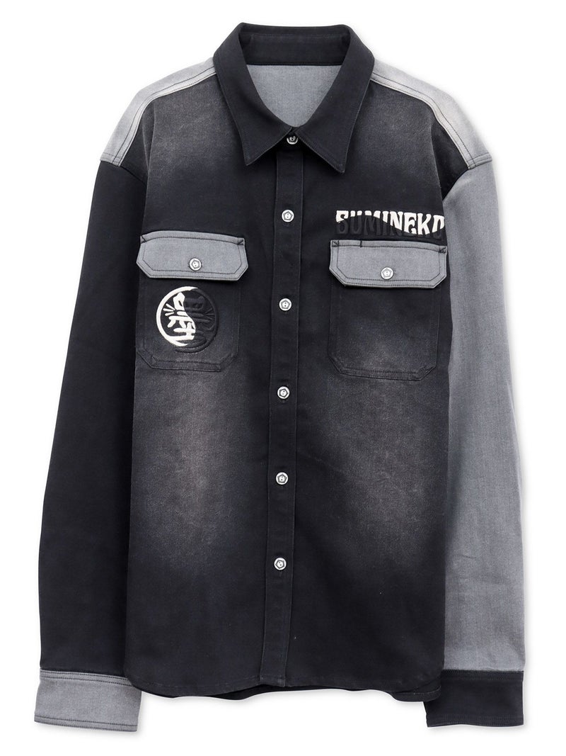 - 【SUMINEKO】“YIN YANG CAT”総刺繍 切替ストレッチデニムシャツ