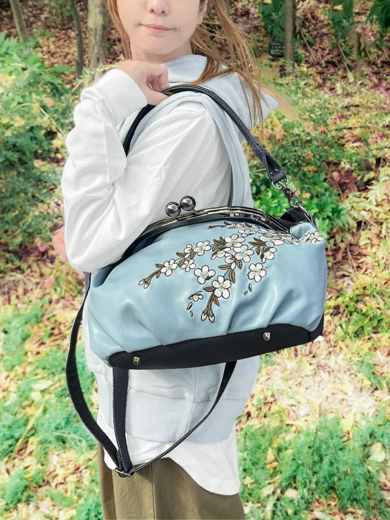 - ≪20%OFF≫【雅結】枝垂れ桜刺繍 配色切替がま口バッグ≪返品・取寄対応不可≫