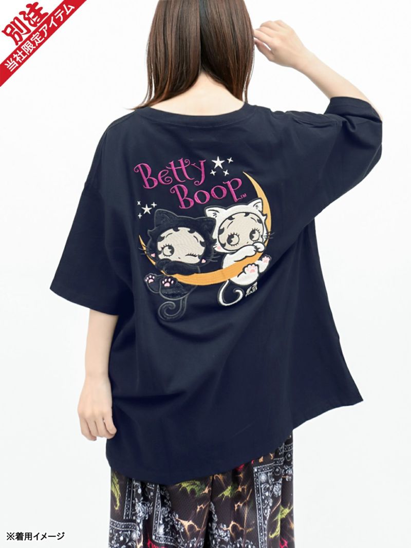 - 【BETTY BOOP】“黒猫&白猫ベイビーベティ”刺繍入りTシャツ〔別注〕