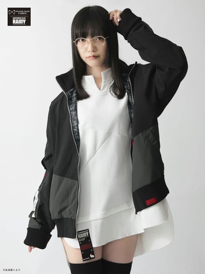 長兎路こよりさん作の3Dモデル「レイニィ」着用のブルゾンをメンズの今風なオーバーシルエットで実現。