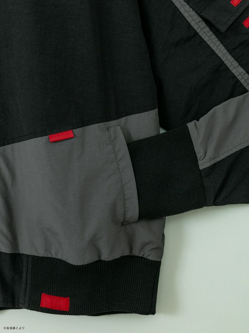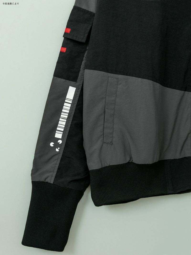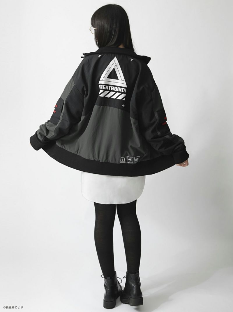 背面と正面左胸の「NAGATRONICS」のマークやロゴのプリント、裏地のモザイク迷彩やネック部分に設置したボタンまで細かい仕様を忠実に再現しました。