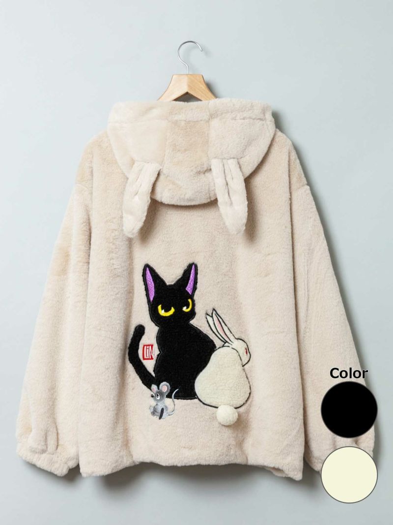 - 【LiN】“ラミとアールとラビの尻尾はリアルだよ!”ふわふわフェイクファー総刺繍耳付きZIPパーカー