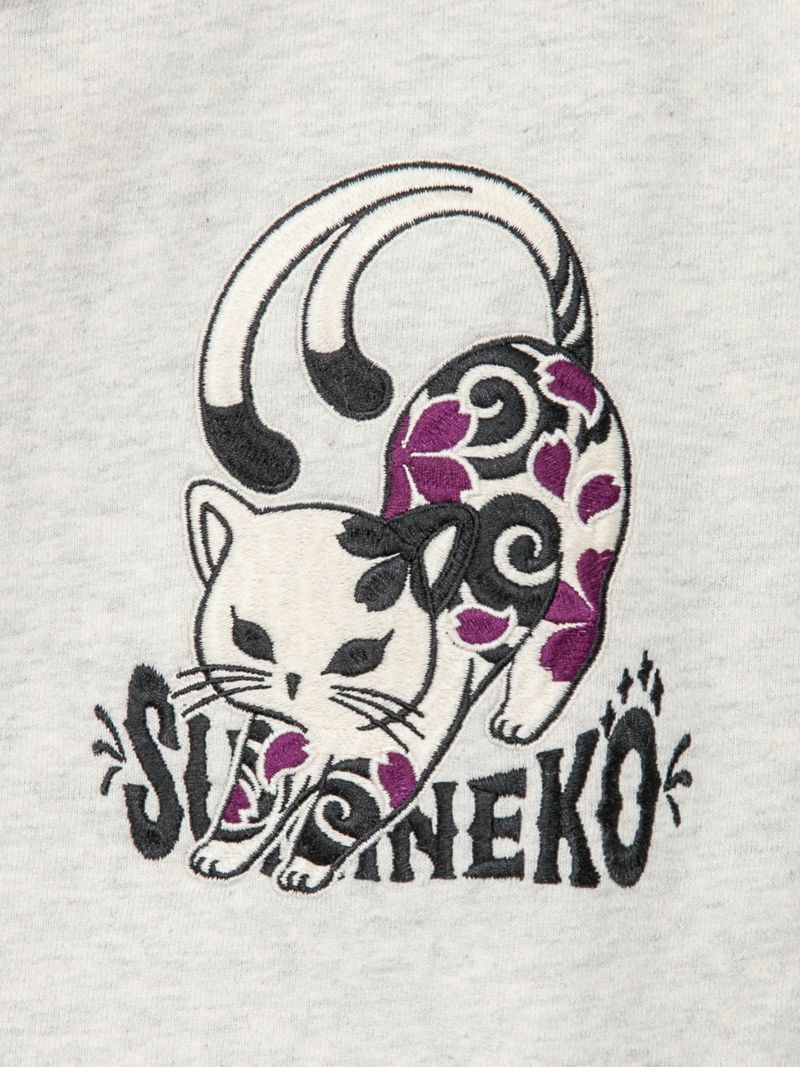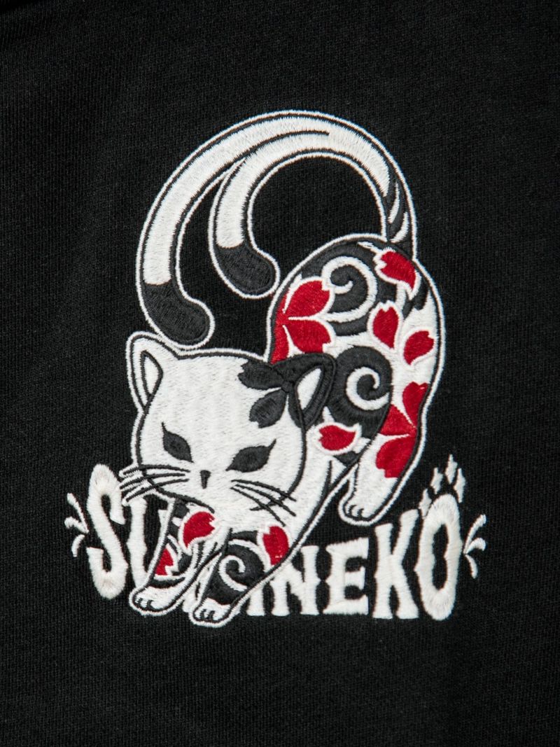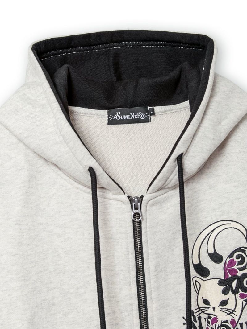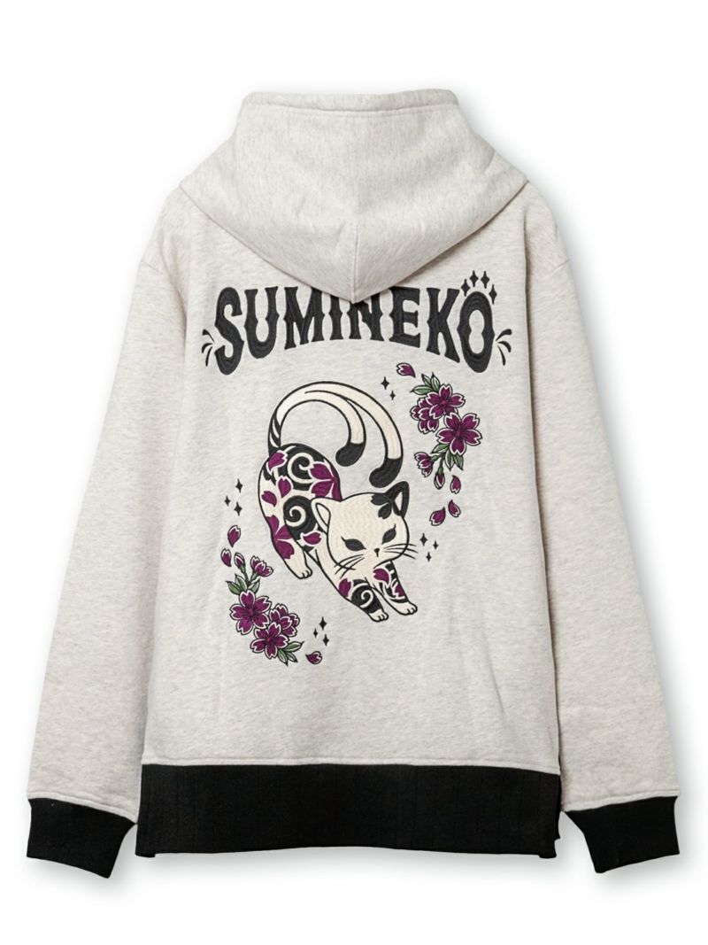 - 【SUMINEKO】“伸び猫”刺繍入りサイドボタンZIPパーカー
