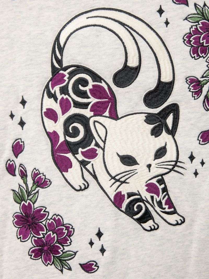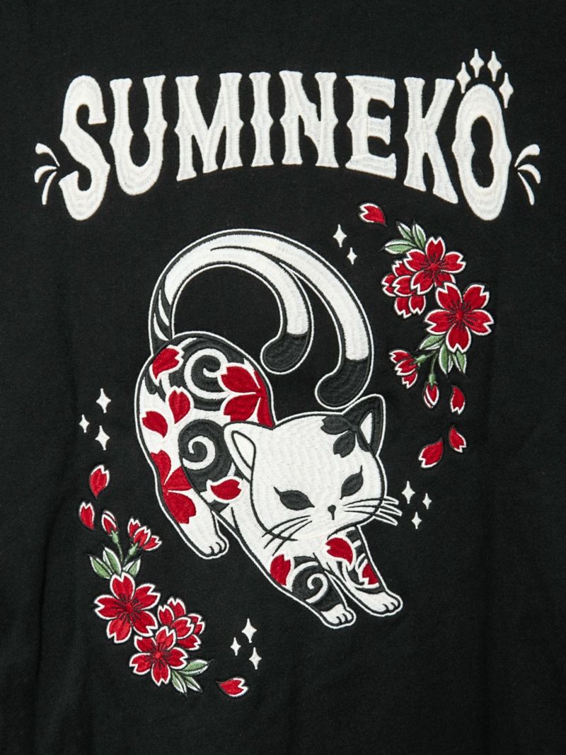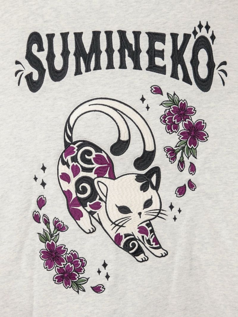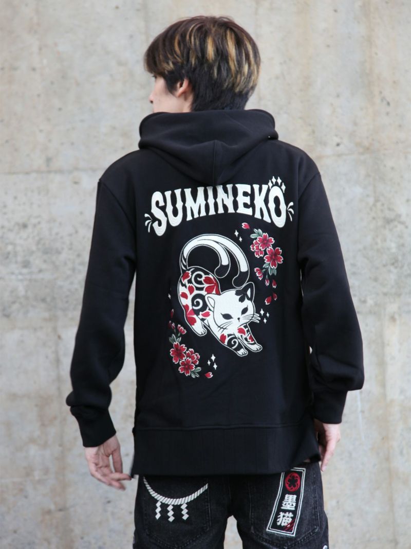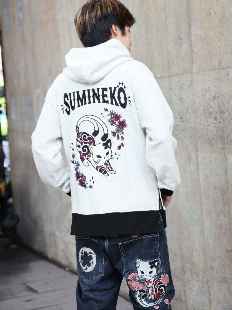- 【SUMINEKO】“伸び猫”刺繍入りサイドボタンZIPパーカー