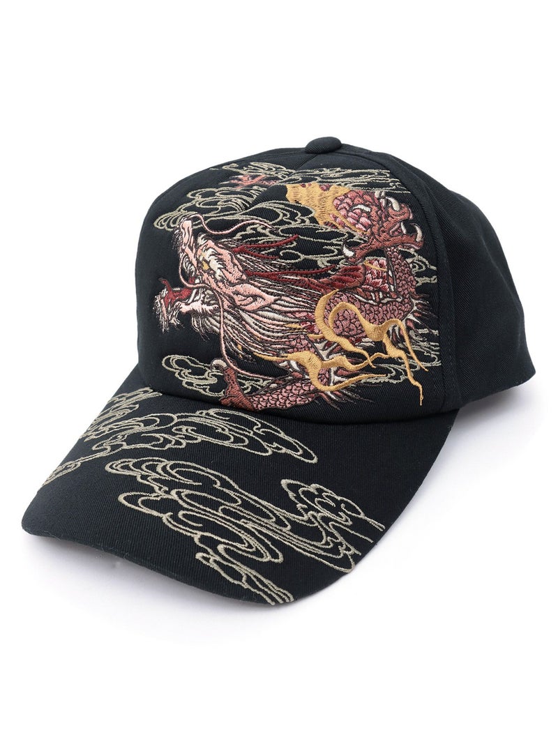 コーディネイトを締めるポイントとなる迫力満点の総刺繍キャップは贈り物にもオススメです。