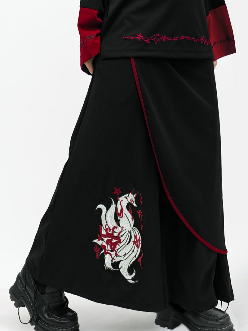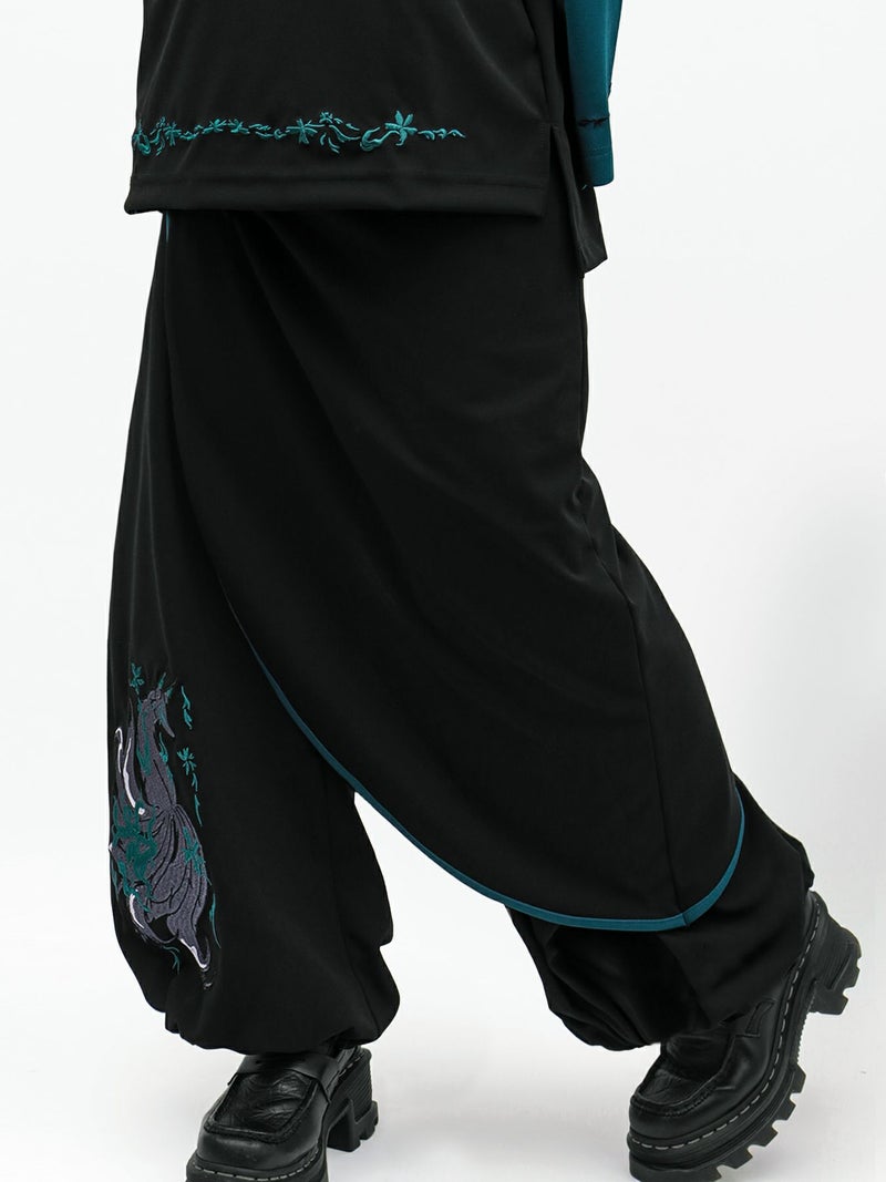 3. 【雅結 -EN-】“九尾”刺繍入り変形ワイドパンツ