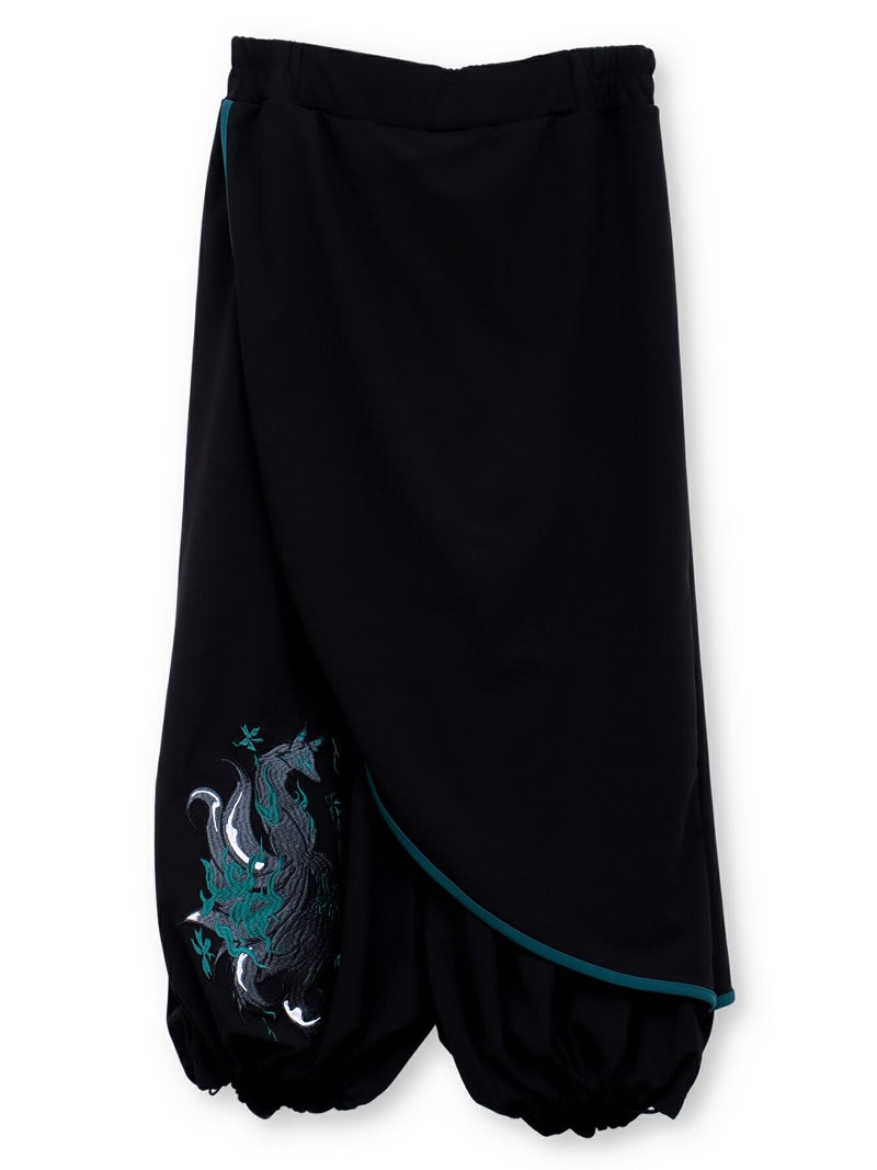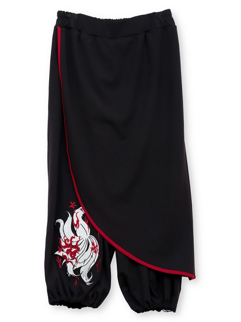 4. 【雅結 -EN-】“九尾”刺繍入り変形ワイドパンツ