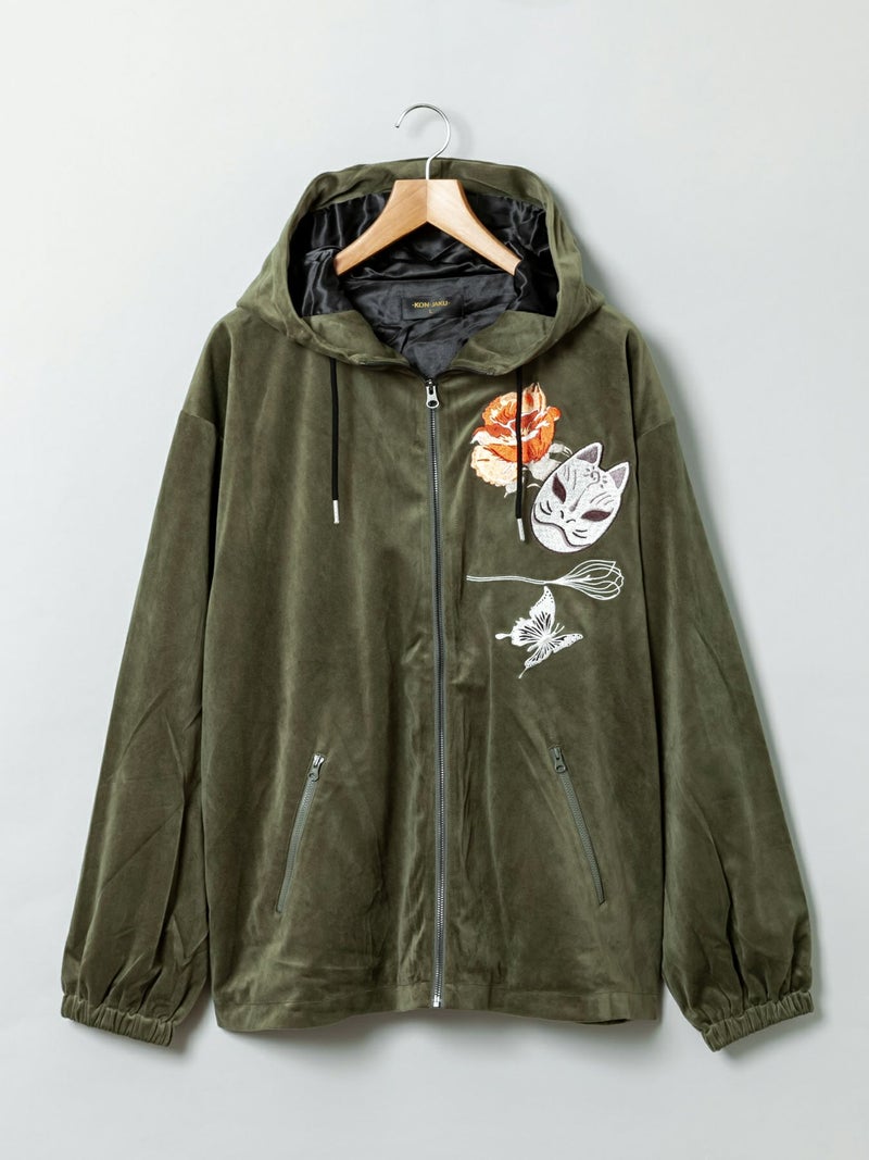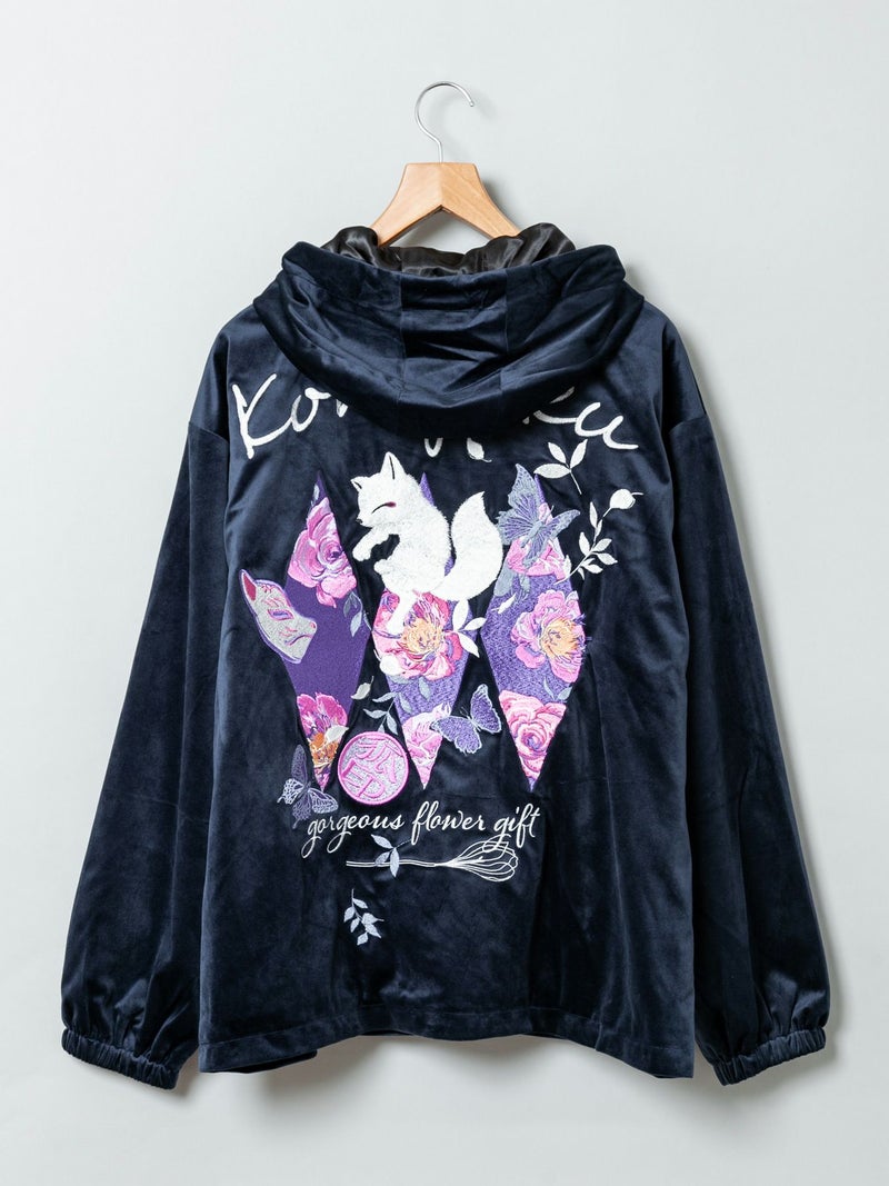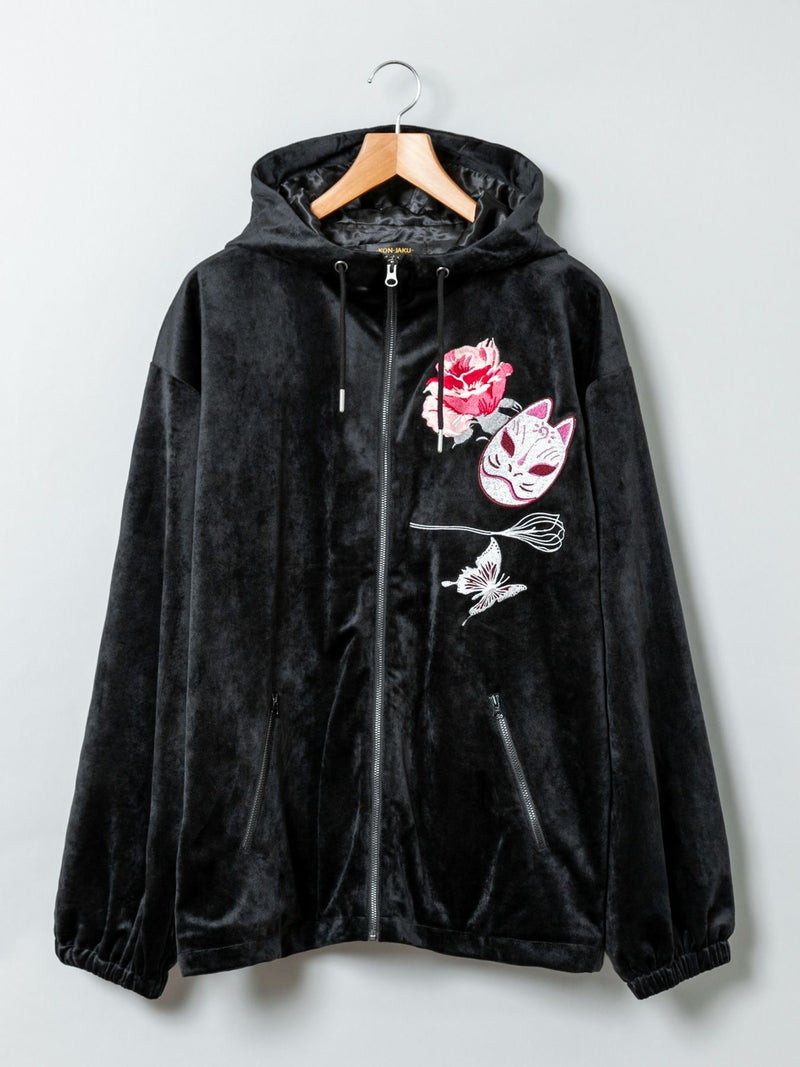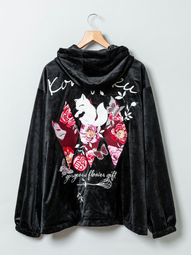 3. 【今昔 -KON-JAKU-】“花のおくりもの”刺繍入りベロアフードJKT