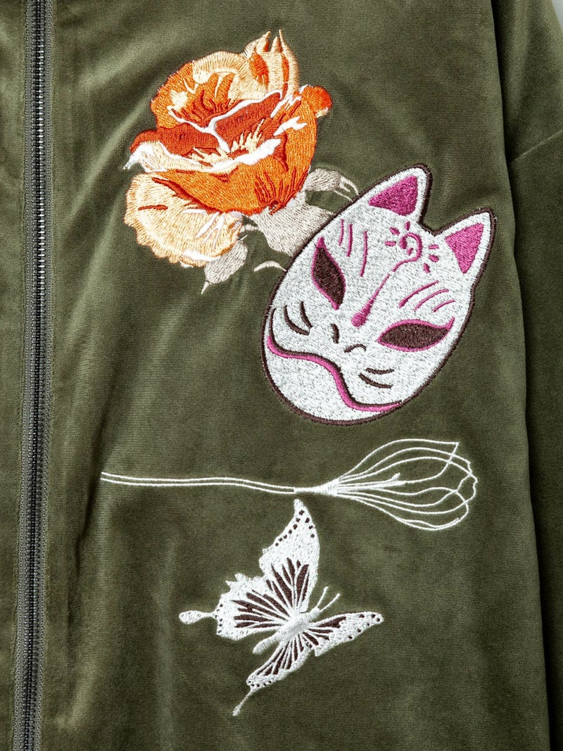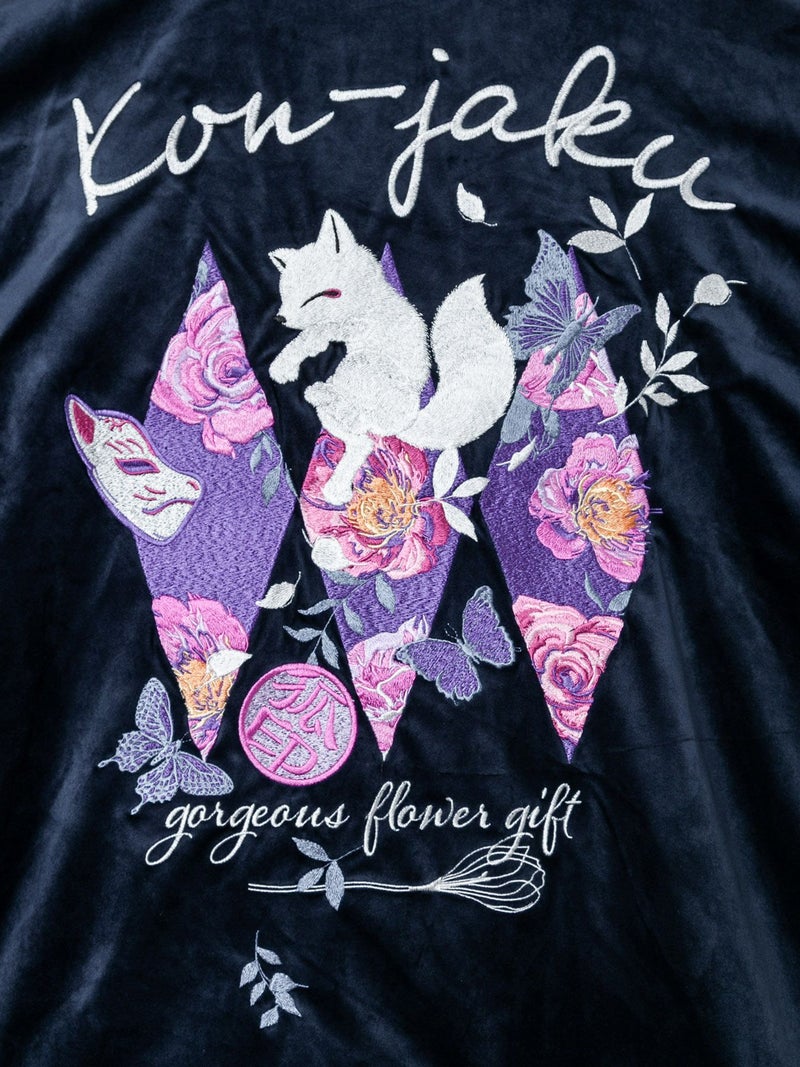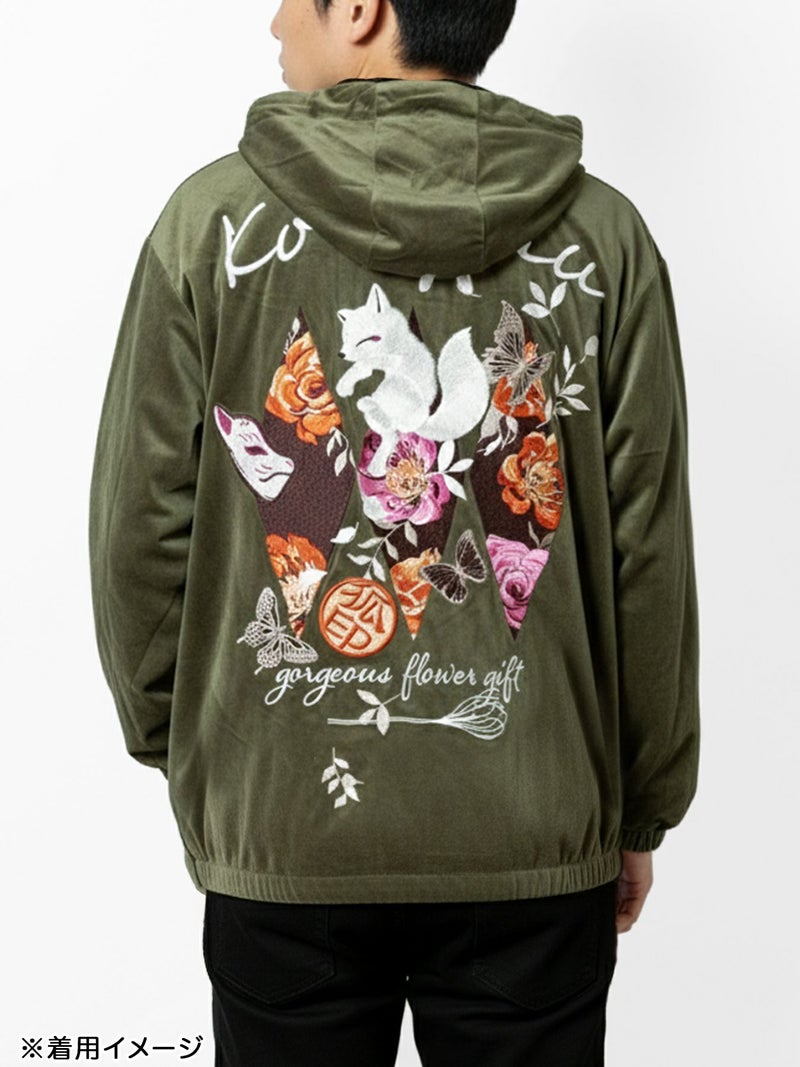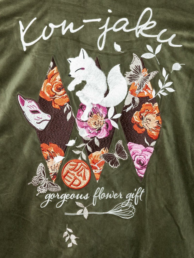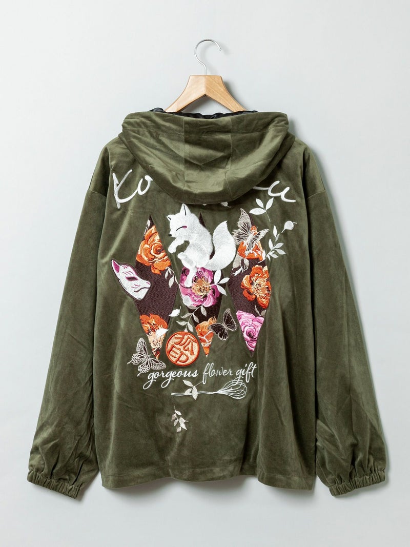 3. 【今昔 -KON-JAKU-】“花のおくりもの”刺繍入りベロアフードJKT