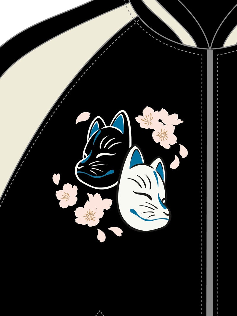 フロントはシンプルに胸元に狐の面とベティをさりげなく刺繍で配置した洗練されたデザイン。