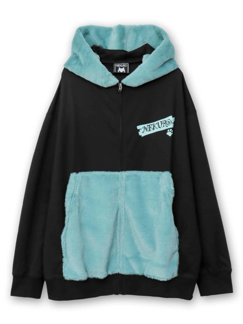 - ≪30%OFF≫【NEKURO】“威嚇スルNEKURO”フェイクファー配色切替ZIPパーカー≪返品・取寄対応不可≫
