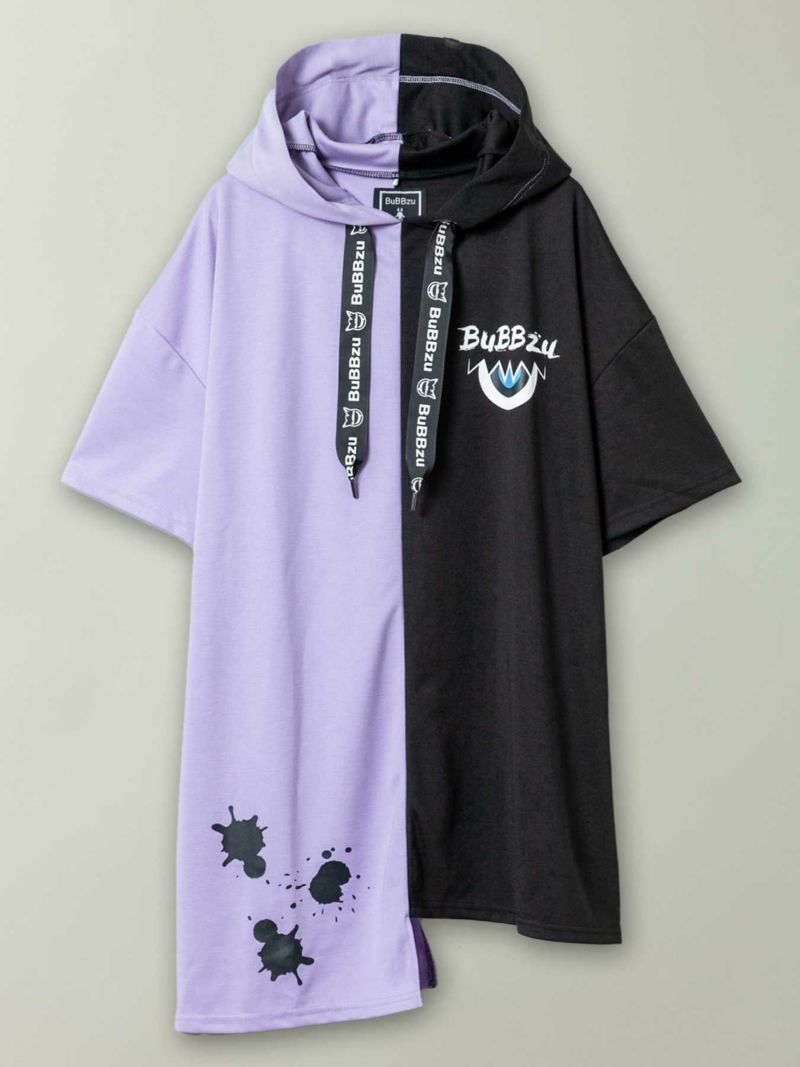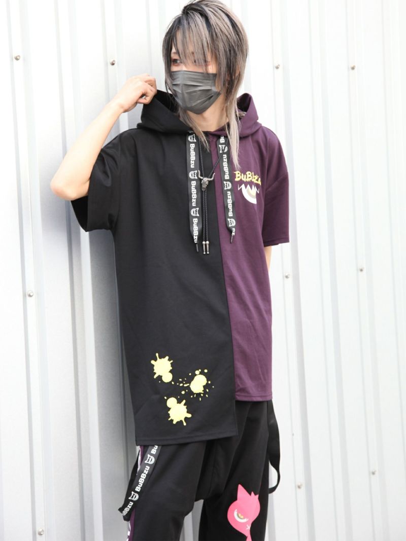 - ≪31%OFF≫【BuBBzu】“YU-UTSU”配色切替アシンメトリー半袖ロングパーカー≪返品・取寄対応不可≫