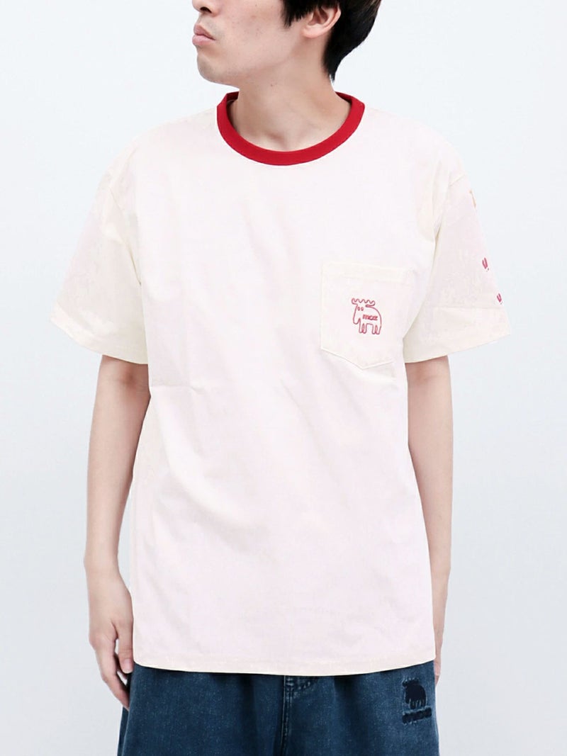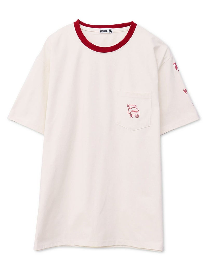 - ≪17%OFF≫【moz】エルクワンポイント刺繍 ポケット付きリンガーTシャツ〔別注〕≪返品・取寄対応不可≫