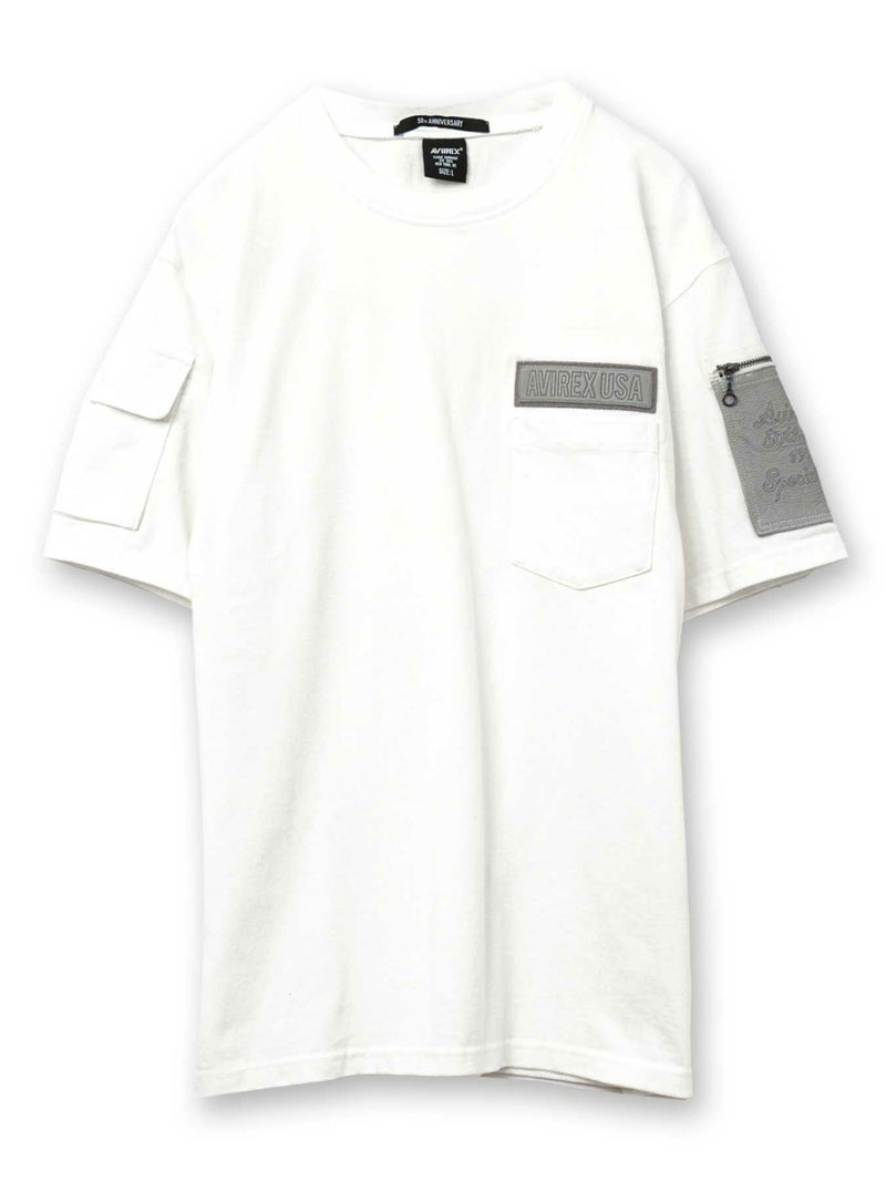 5. 【AVIREX】LEATHER PATCHED FATIGUE T-SHIRT<50th Anniversary>