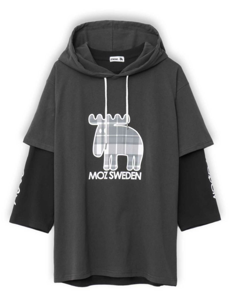 - ≪17%OFF≫【moz】チェックエルクプリント 半袖TEEパーカー×7分袖Tシャツ アンサンブル〔別注〕≪返品・取寄対応不可≫