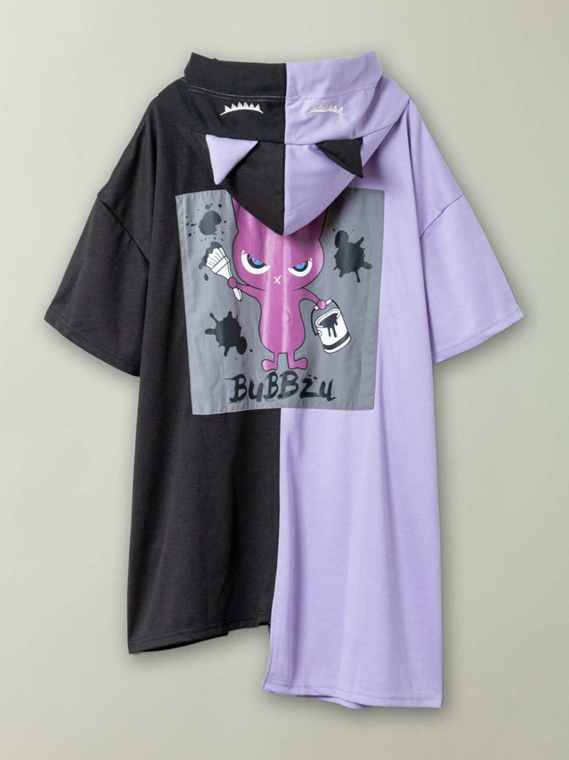 - ≪31%OFF≫【BuBBzu】“YU-UTSU”配色切替アシンメトリー半袖ロングパーカー≪返品・取寄対応不可≫