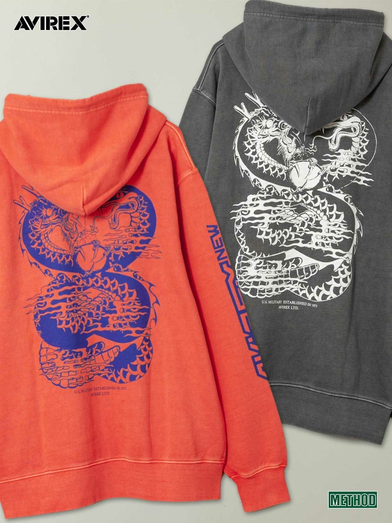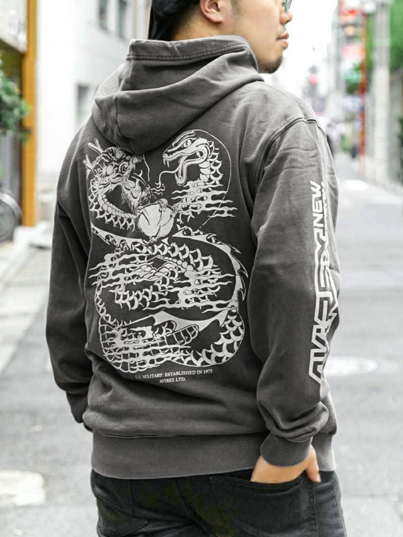- ≪30%OFF≫【AVIREX】“DRAGON&SNAKE”FADEWASHPRINTSWEATPULLPARKA〔LIMITED〕≪返品・取寄対応不可≫