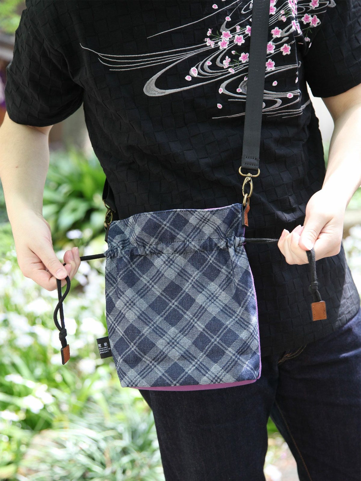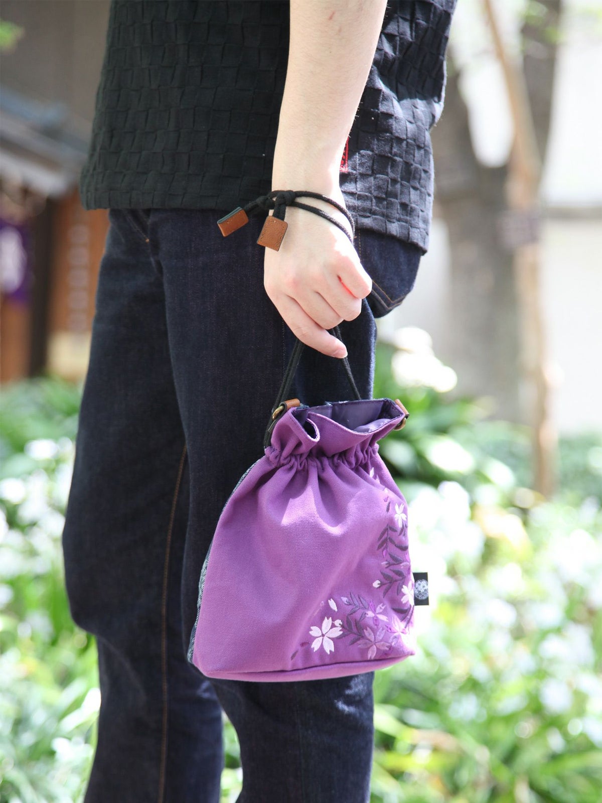 蔦桜刺繍 2WAY巾着バッグ