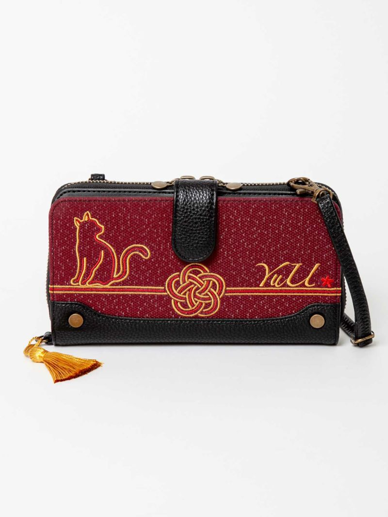 - 【雅結 -YuU-】猫と水引刺繍 2WAYウォレットショルダーバッグ