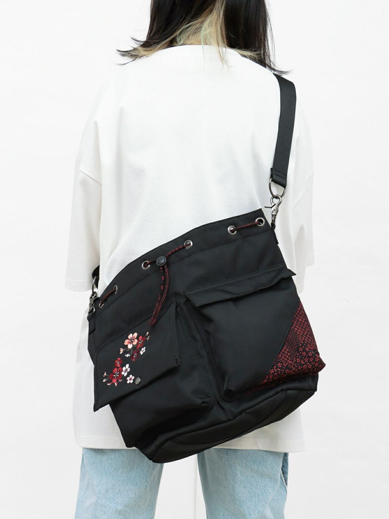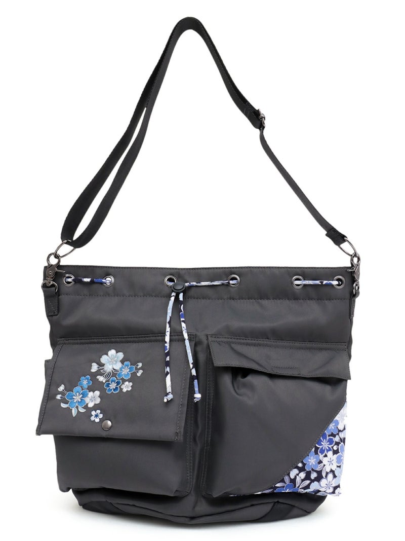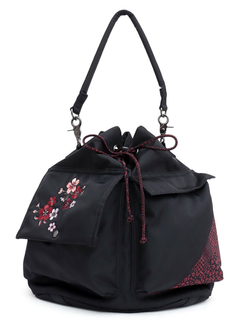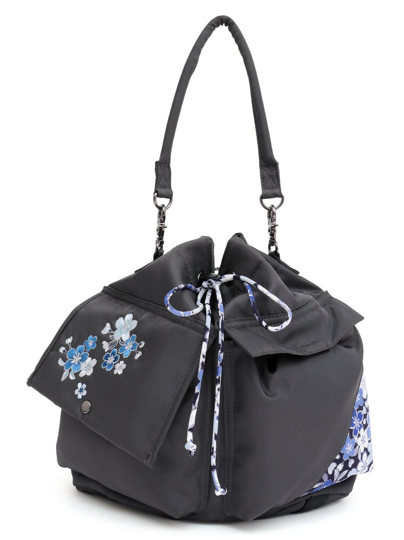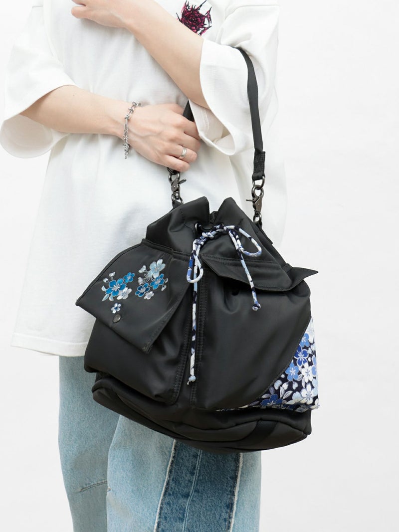 桜刺繍 和生地遣い2WAY巾着ショルダーバッグ