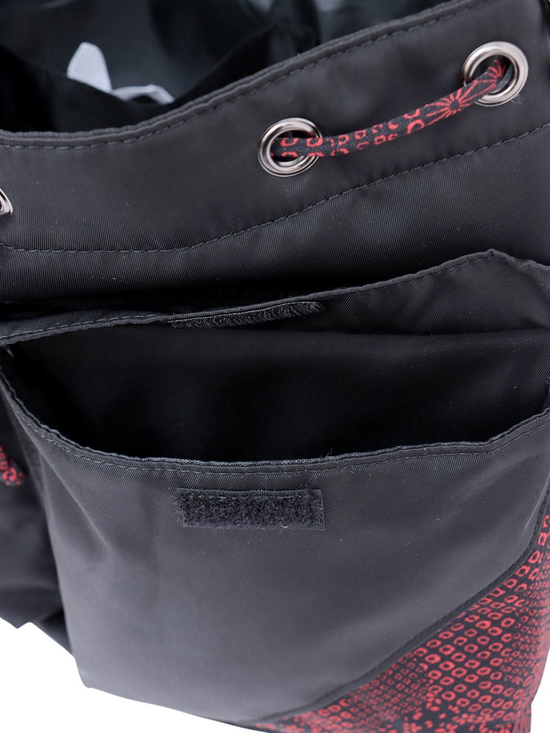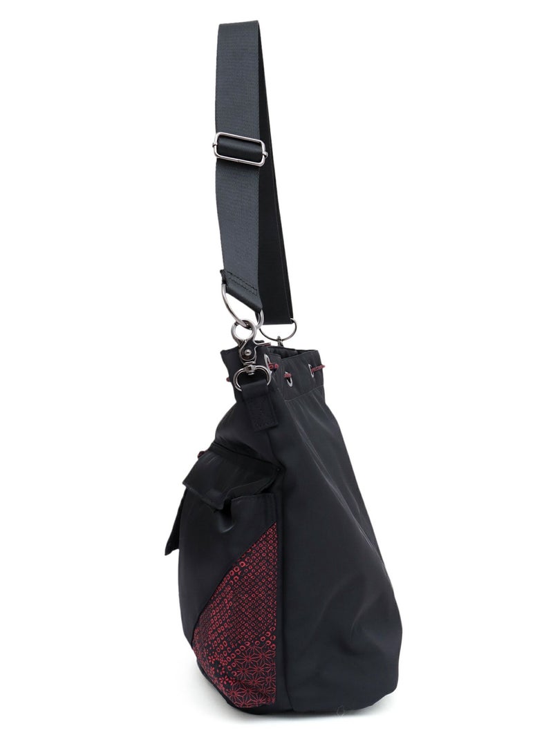 さらに巾着のヒモは、ポケット部分と同様の和生地を使用しており統一感を演出。
