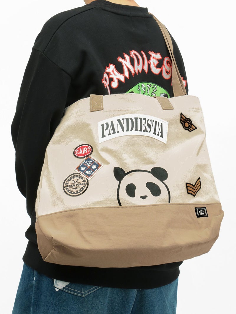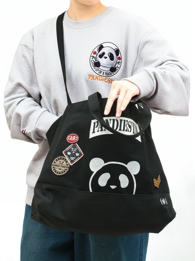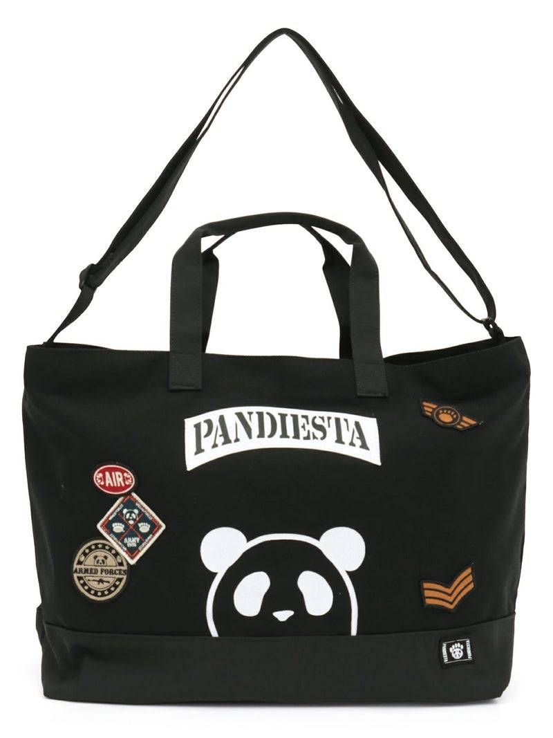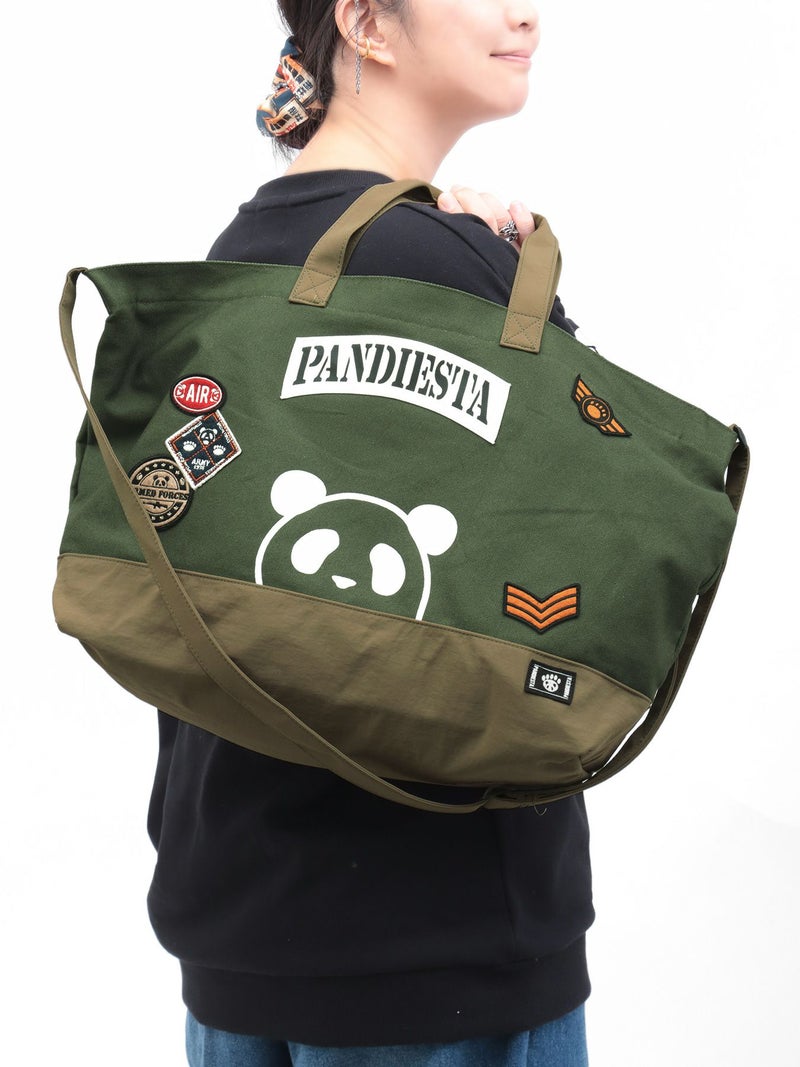 正面にお馴染みのパンダフェイスのプリントを大きく配置し、周囲にはミリタリー感あふれるワッペンやピスネームを配置しました。