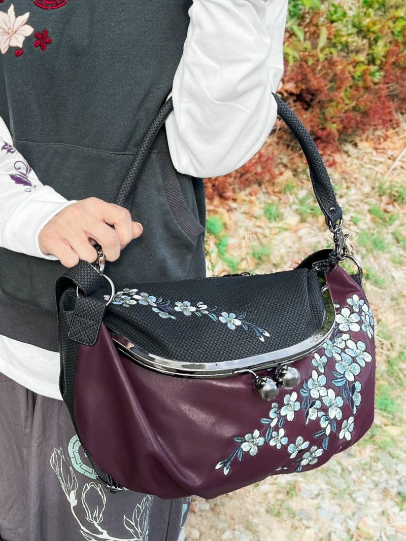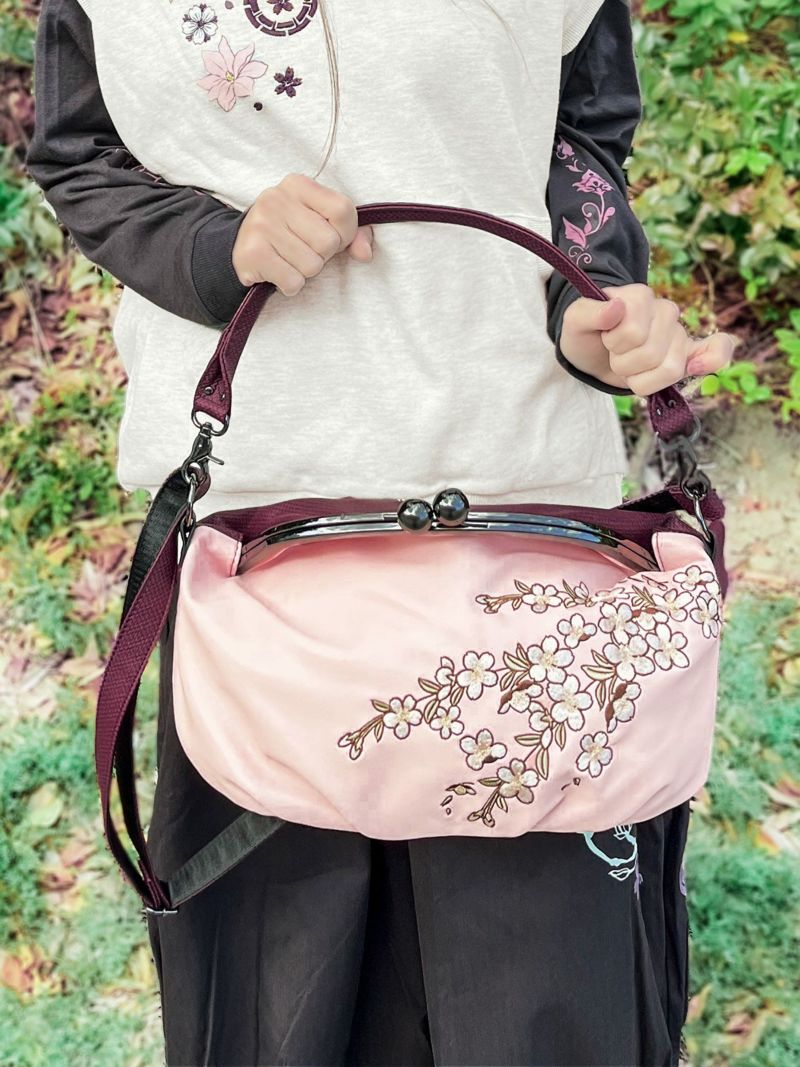 - ≪20%OFF≫【雅結】枝垂れ桜刺繍 配色切替がま口バッグ≪返品・取寄対応不可≫