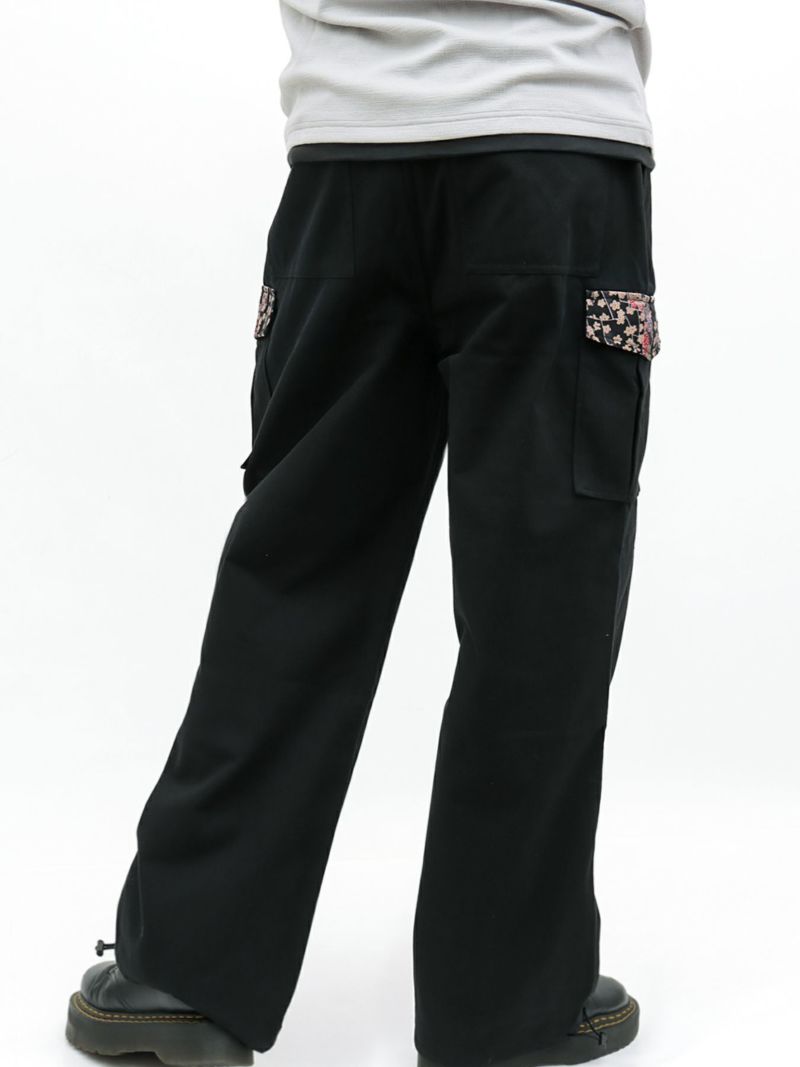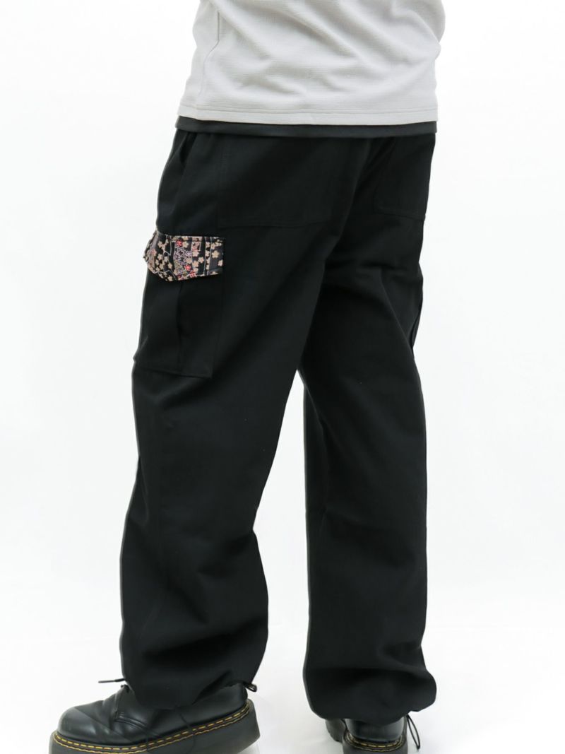 桜刺繍ちりめん切替ダックカーゴパンツ