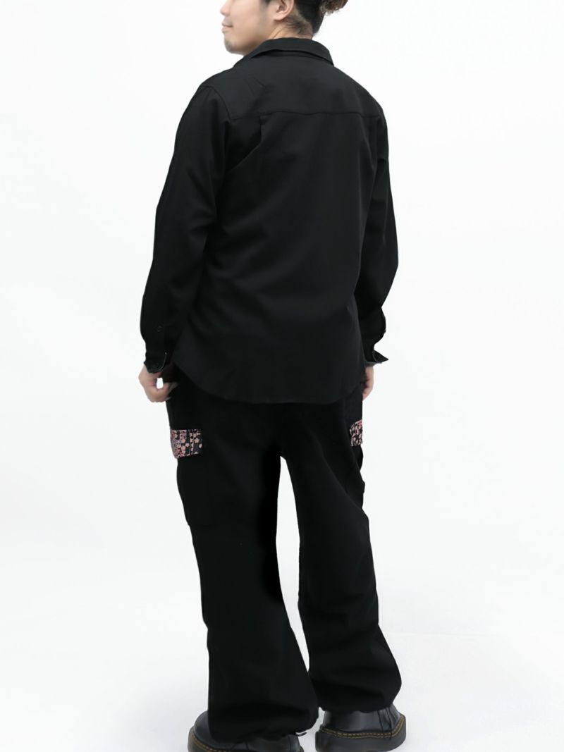 右脚には細やかな桜刺繍を施しており、両サイドに設置されたカーゴポケットのフラップ部分には、落ち着いた色合いで上品な印象を与えてくれる縮緬生地を配しました。