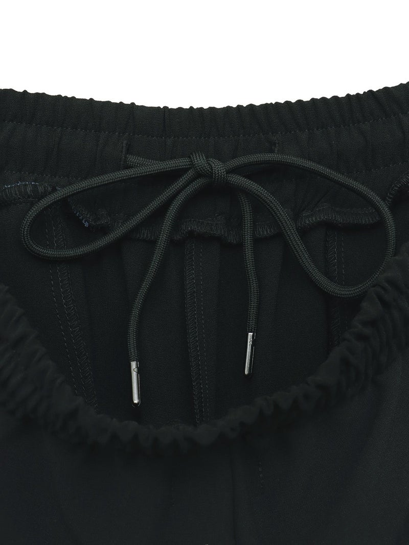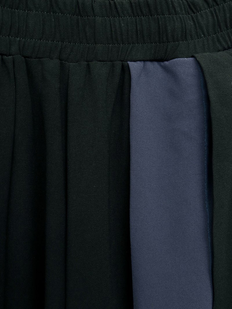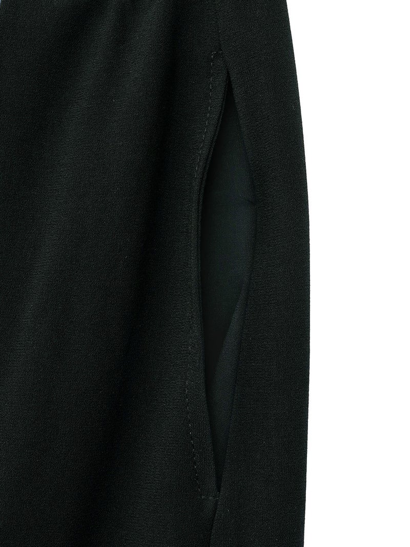 柔らかで肌触りの良いポリエステル生地を本体に、左脚のスリット部分には本体色によって色を変えた配色切替仕様に。
