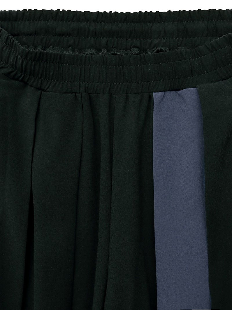 上品な配色切替が目を惹く、和の雰囲気漂うワイドシルエットのロングガウチョパンツ。