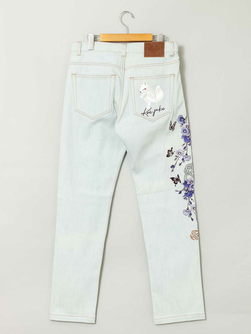 “雪月風花”総刺繍ストレッチデニムパンツ
