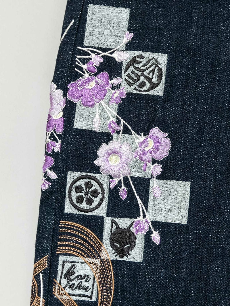 4. 【今昔 -KON-JAKU-】“雪月風花”総刺繍ストレッチデニムパンツ