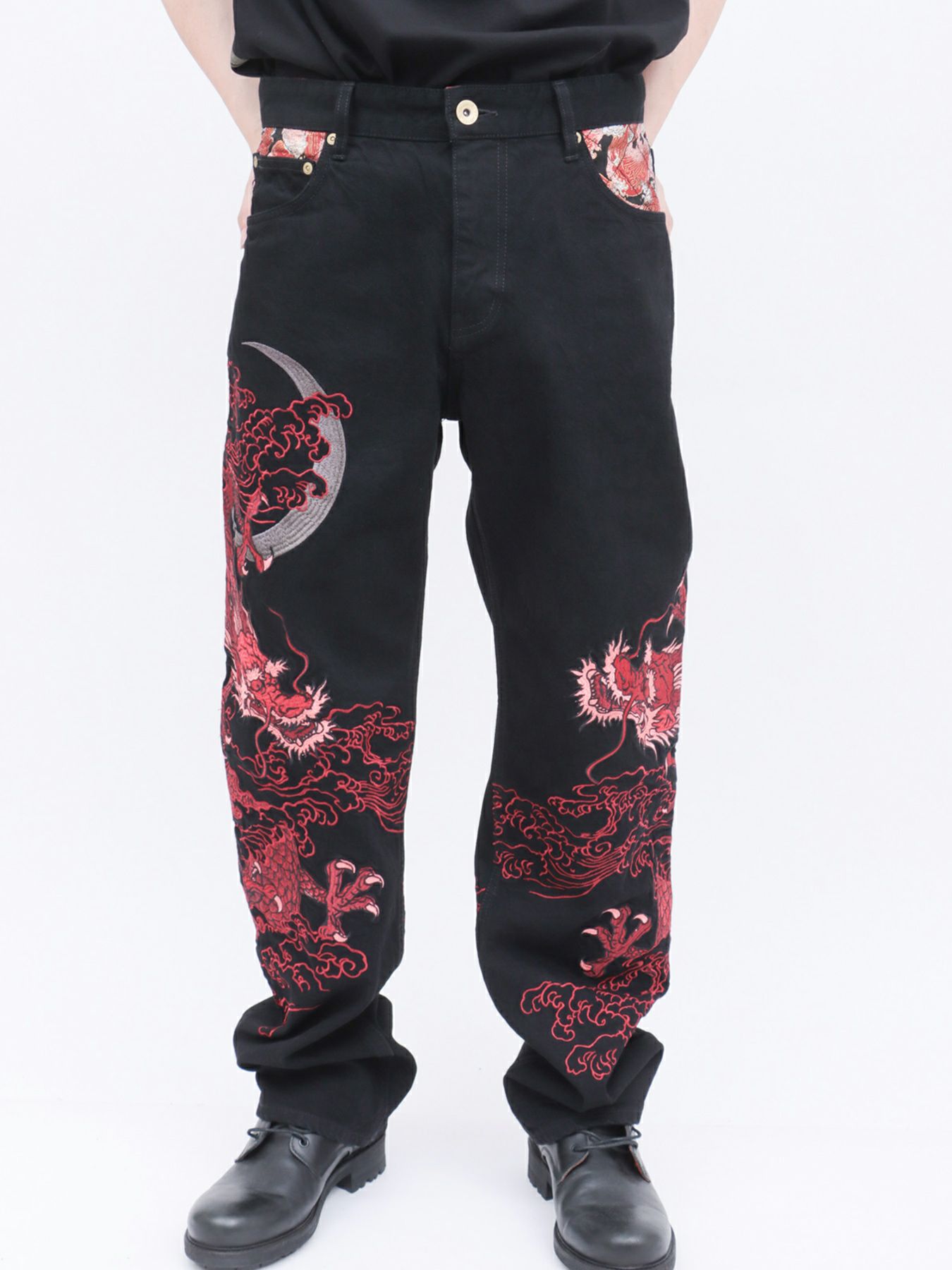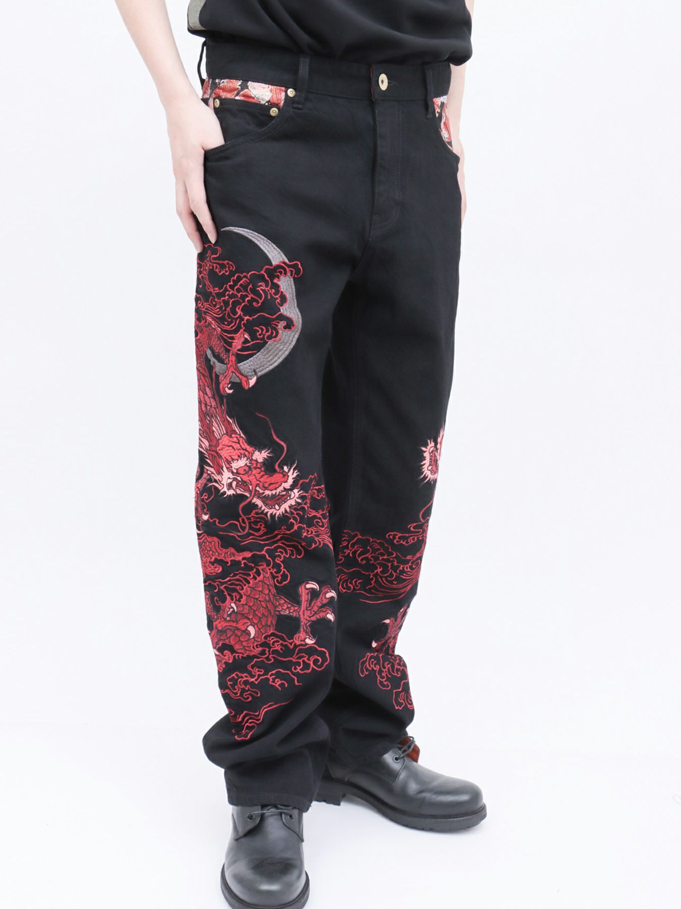 他の画像を見る ≪30%OFF≫【DRASTIC GARDEN】“フェザーダリア”総刺繍デニムバギーパンツ≪返品・取寄対応不可≫ 定価 ¥ 15,642 のところ ¥ 12,166 税込 【モデルサイズ:H181cm / Lサイズ着用】 カートへ追加 お気に入りに登録する