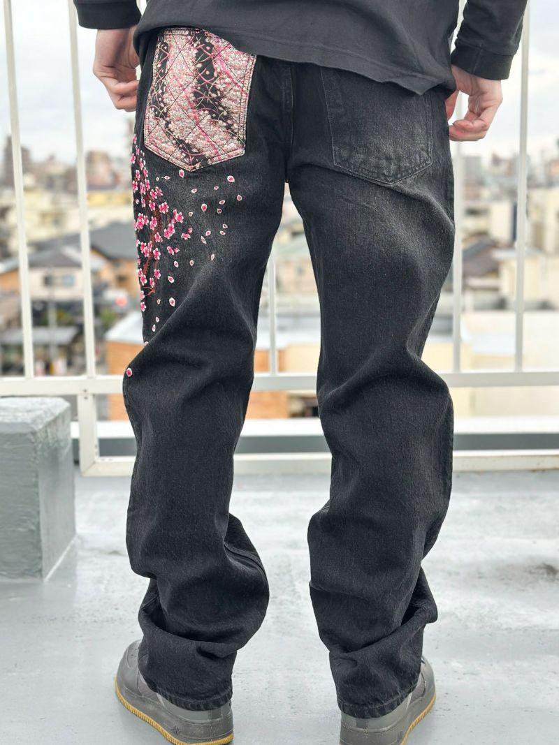 3. 【絡繰魂】“桜吹雪”総刺繍デニムパンツ
