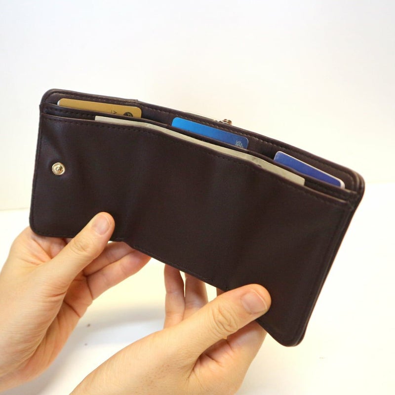 柔らかなシルエットが特徴のがま口仕様の三つ折りウォレットです。