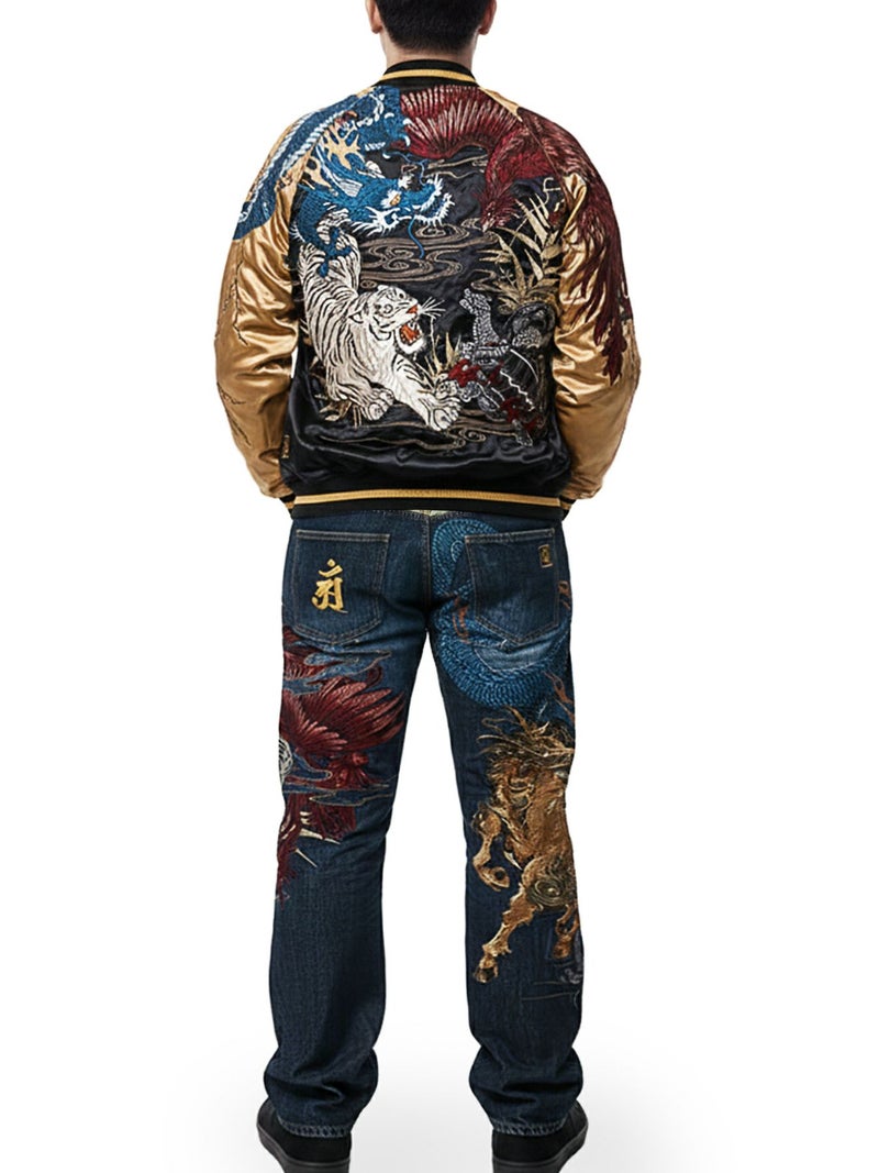 4. <春の予約会>【絡繰魂・頂】“五神”総刺繍デニムパンツ〔別注〕