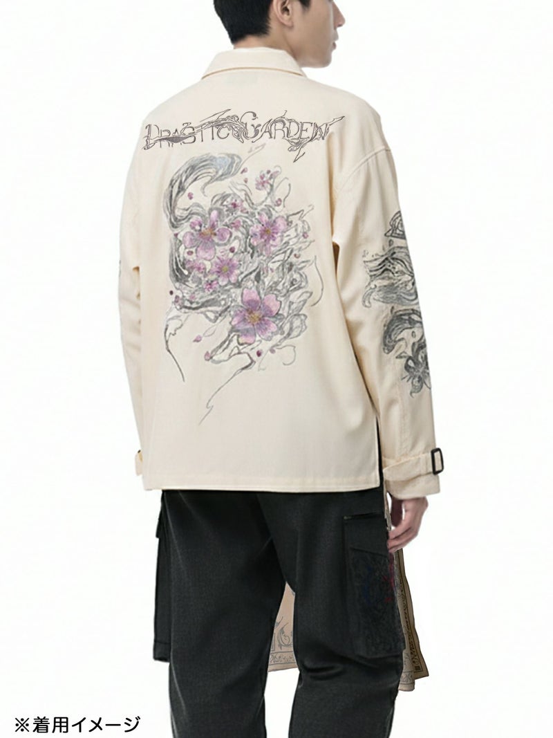 <春の予約会>【DRASTIC GARDEN】“煙ノ桜”刺繡入り変形シャツ