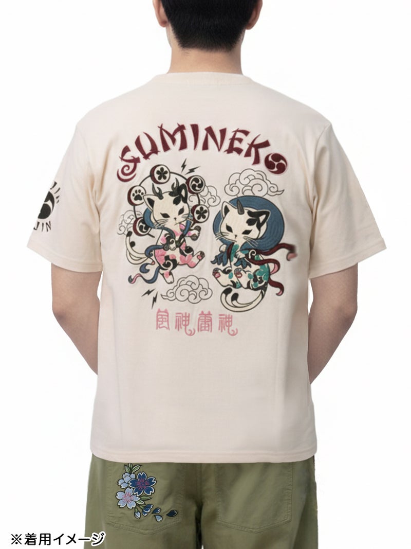 3. <春の予約会>【SUMINEKO】“風雷墨猫”刺繍入りTシャツ