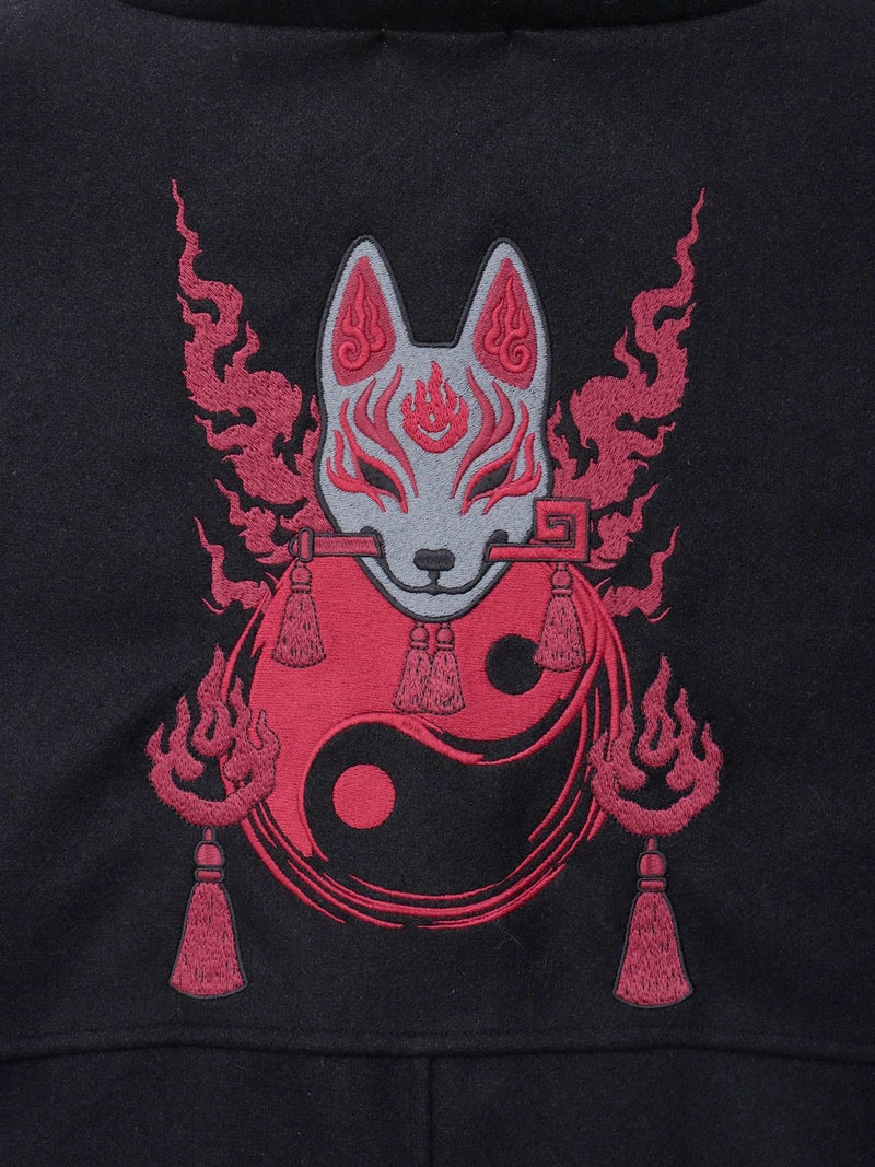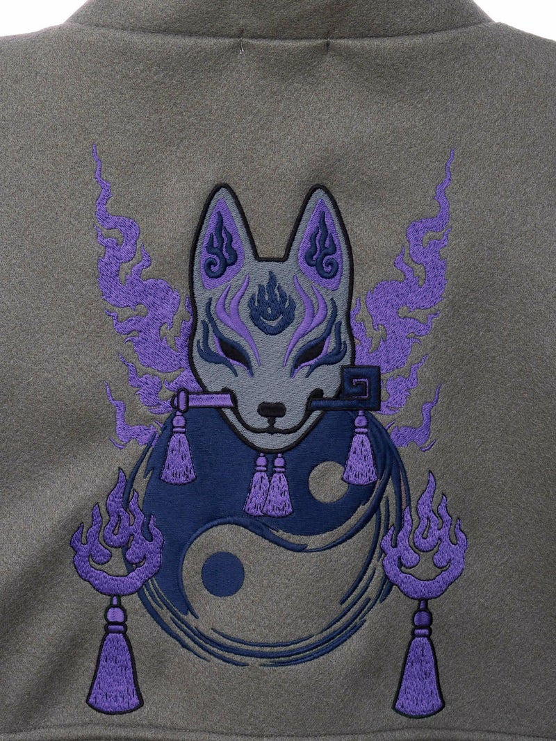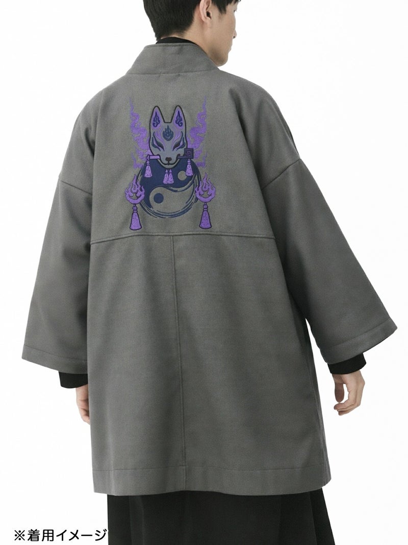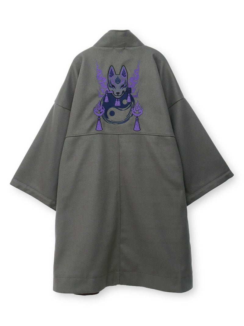“狐面”刺繍入り羽織りコート