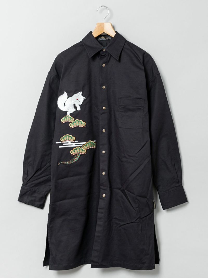 “月下龍虎”総刺繍ロングシャツ