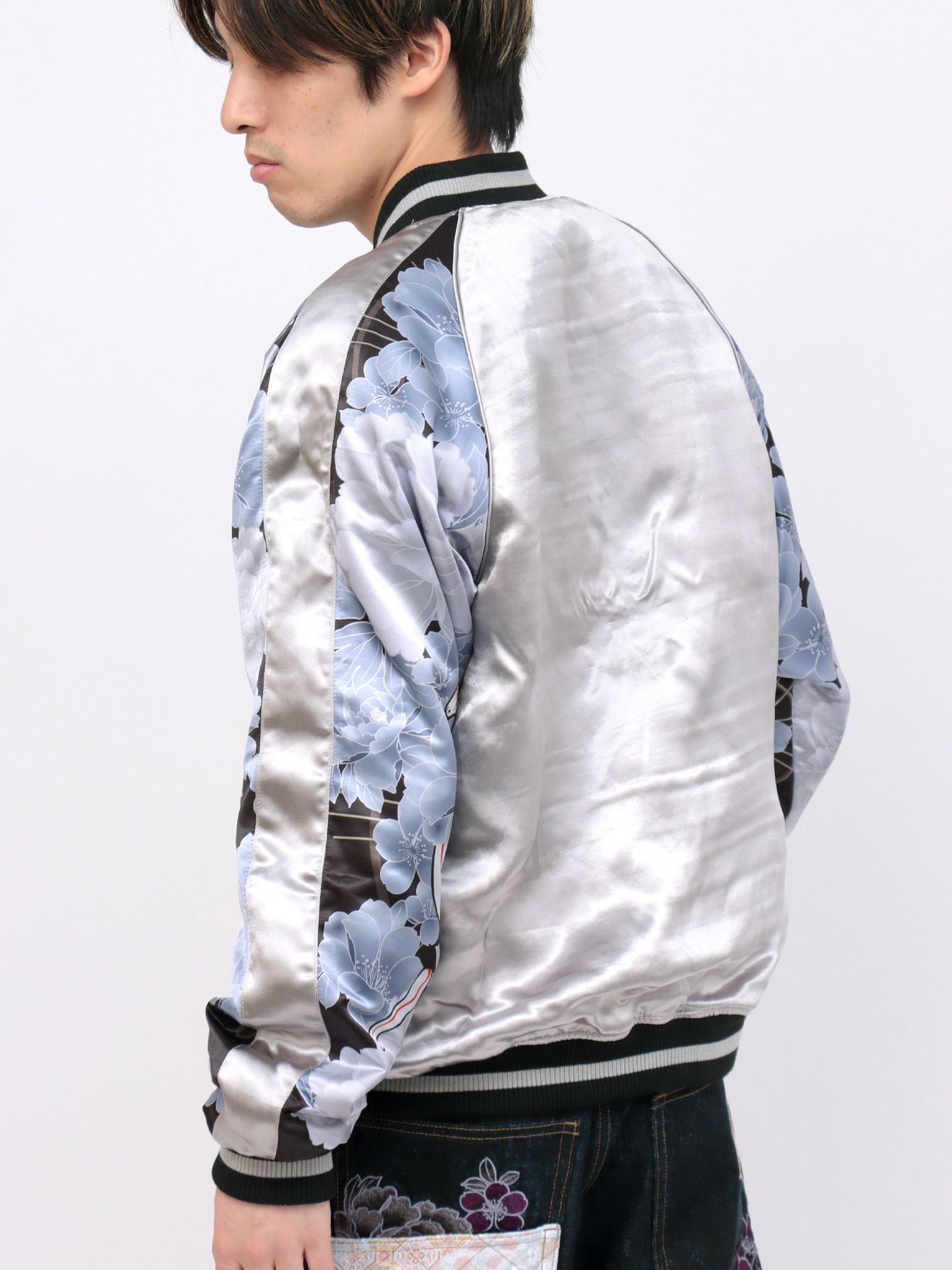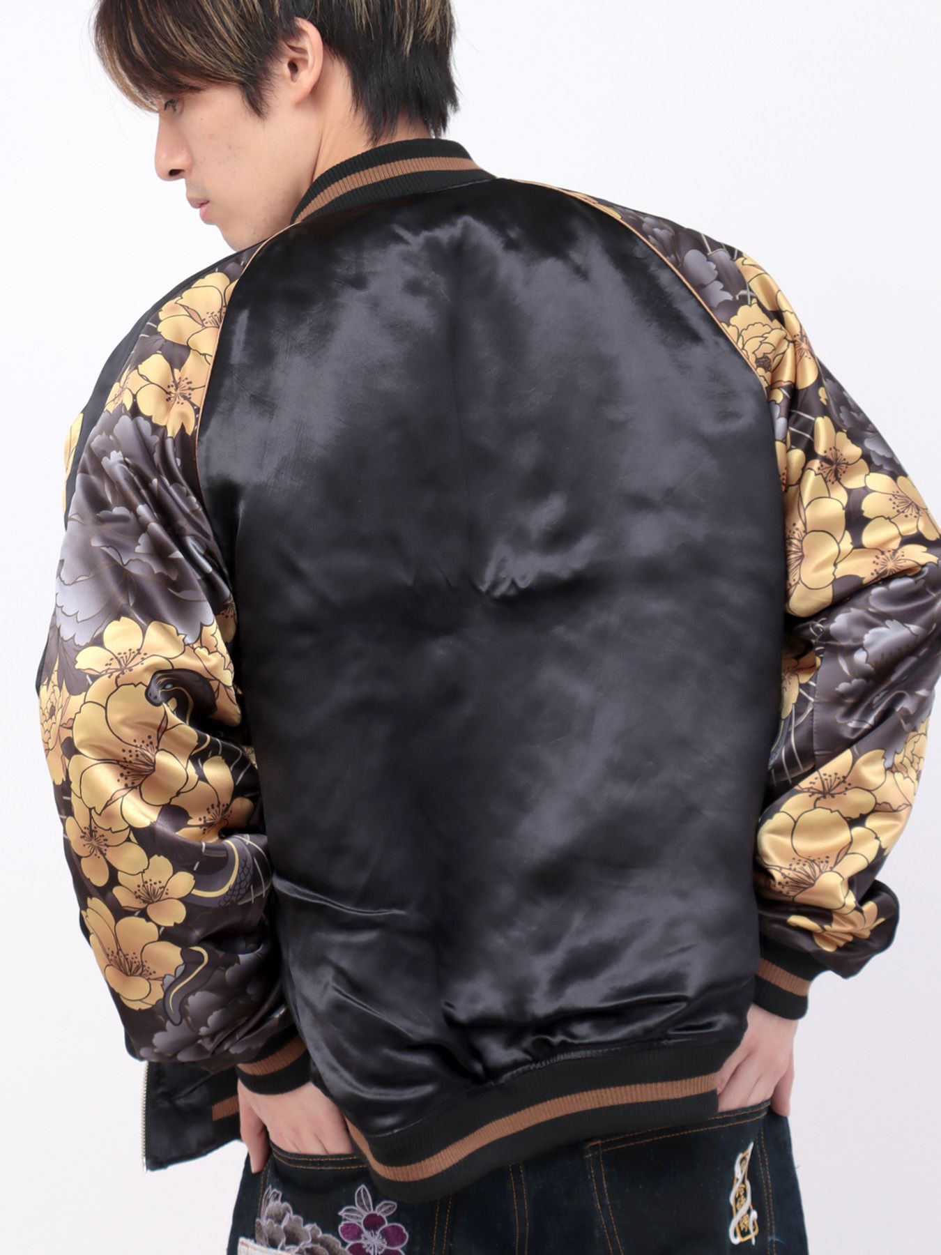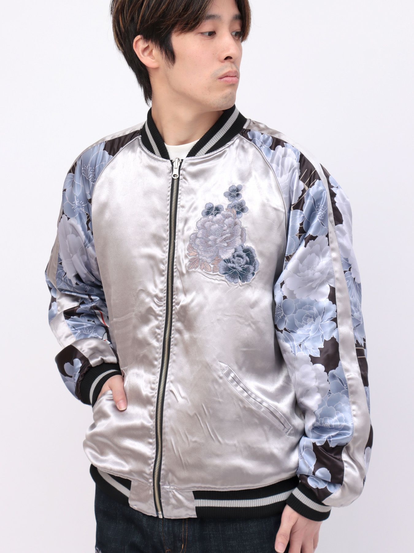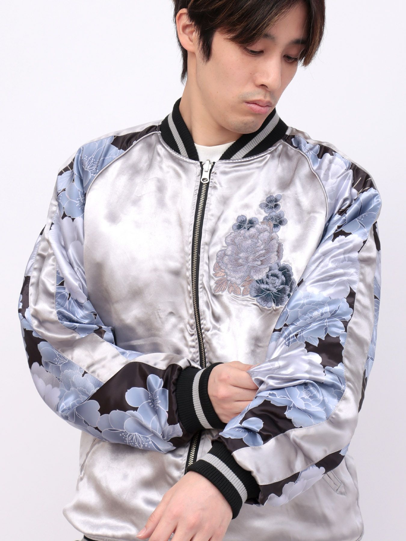 またリバーシブル仕様の裏面には胸元に牡丹の刺繍、両袖には昇華転写プリントで表現された煌びやかな牡丹を総柄でデザイン。