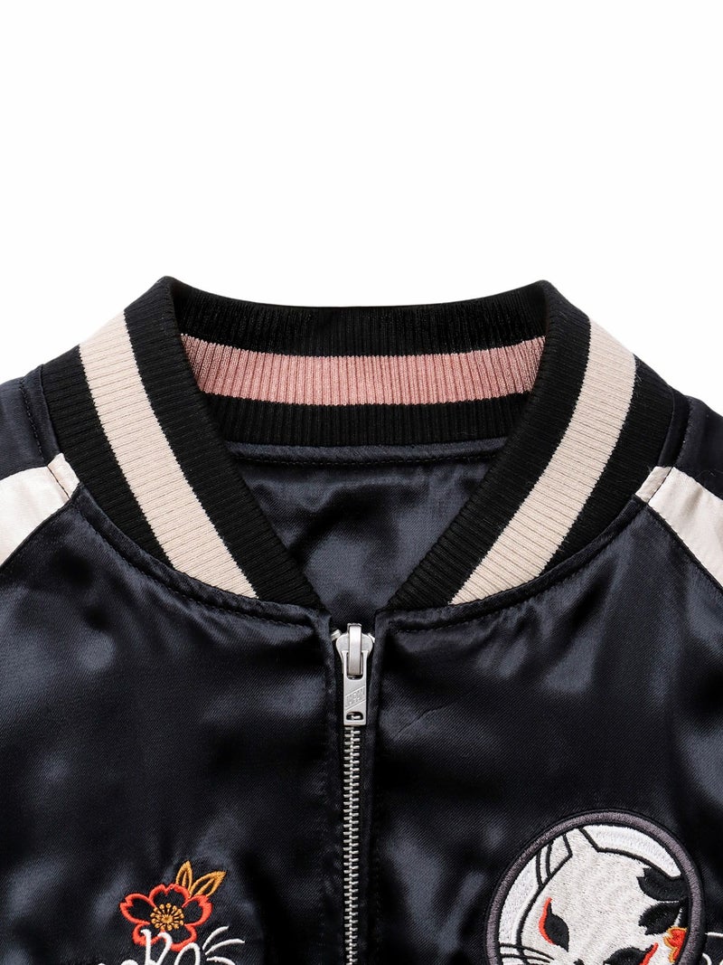 4. 【SUMINEKO】“花魁猫/桜猫”総刺繍リバーシブルスカジャン
