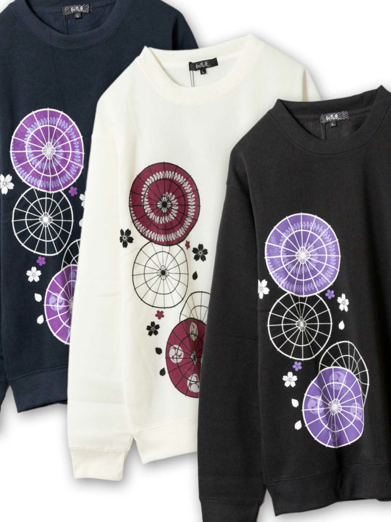 “番傘と桜”プリント入り裏起毛トレーナー≪返品・取寄対応不可≫