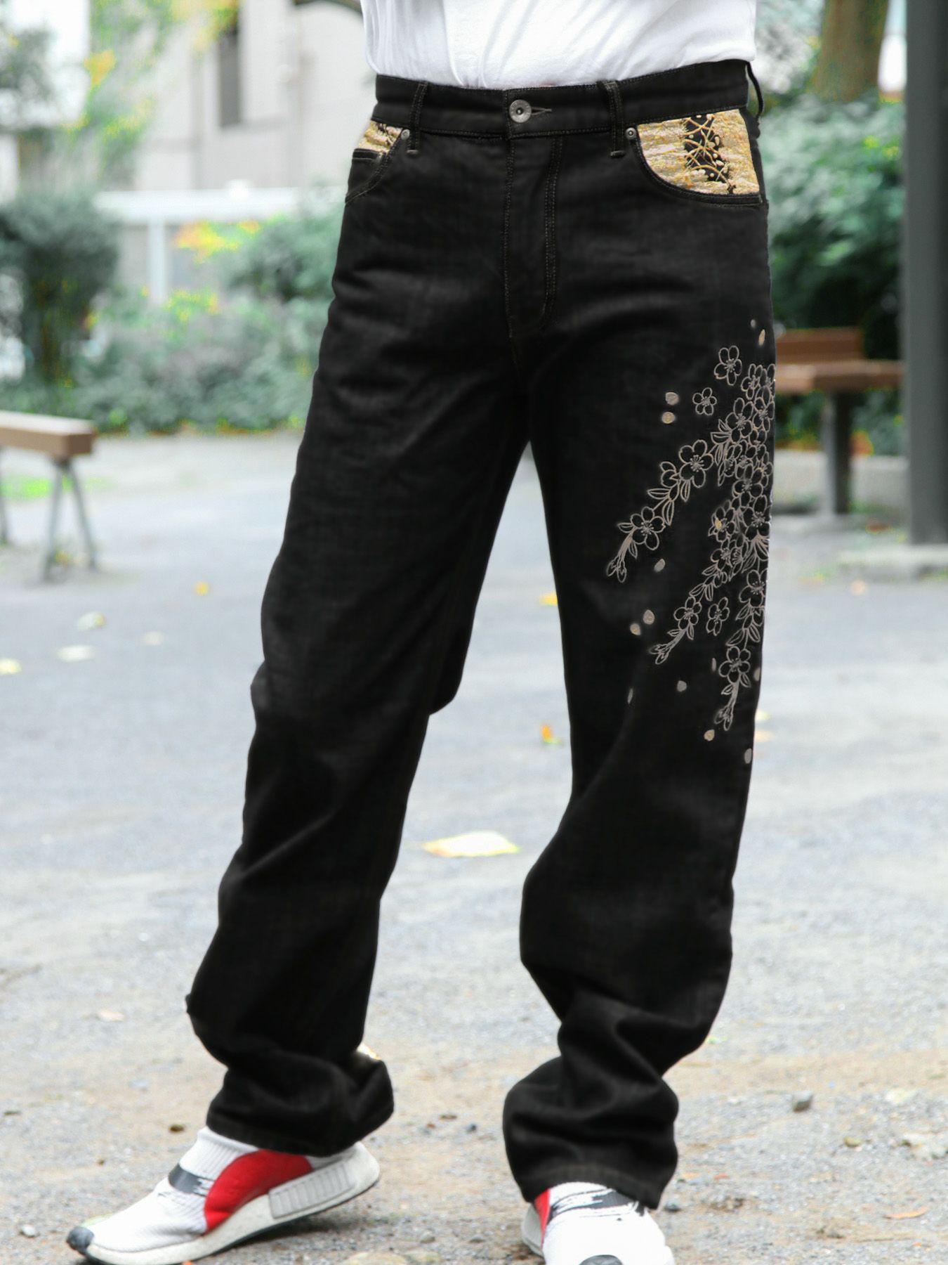 枝垂れ桜刺繍×金襴切替デニムパンツ≪返品・取寄対応不可≫