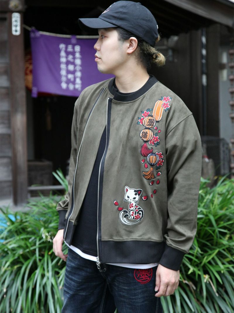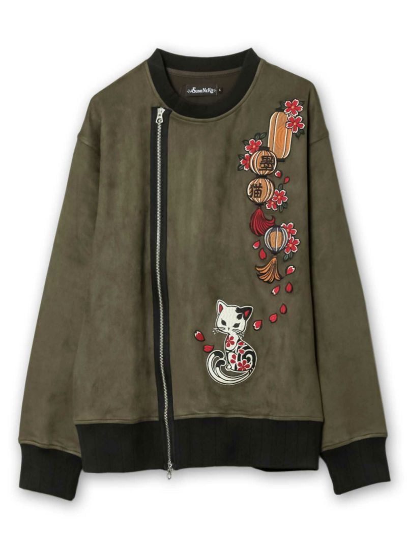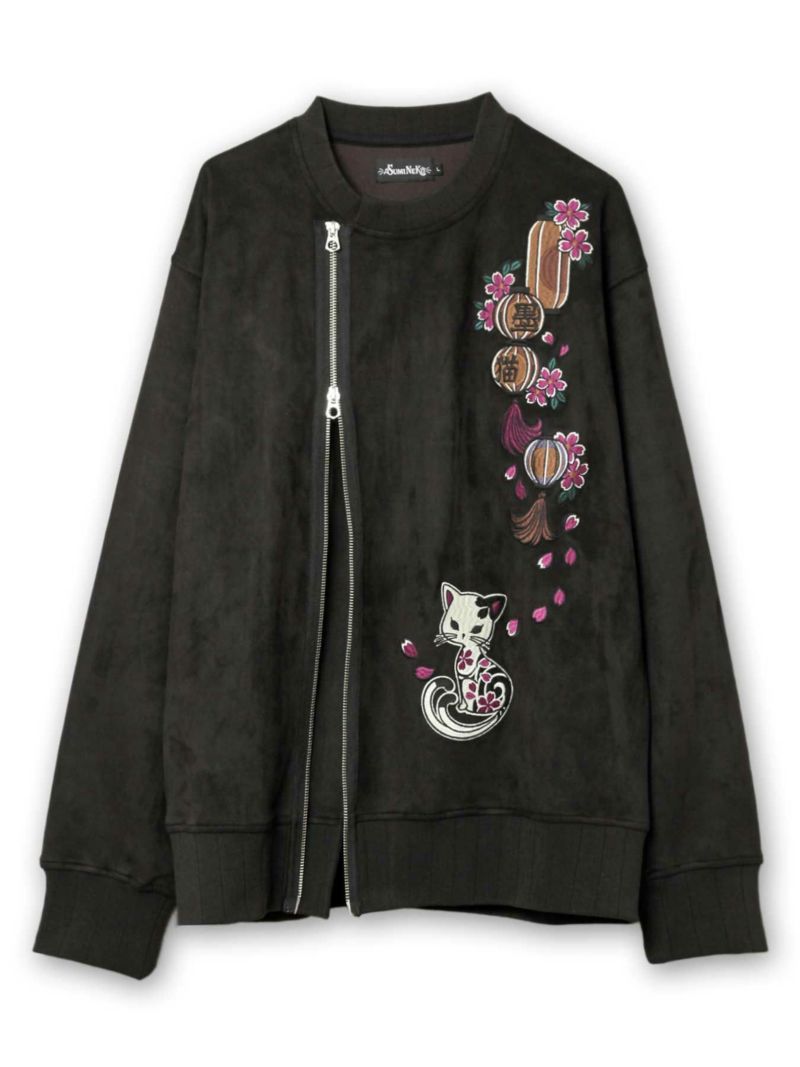 - ≪10%OFF≫【SUMINEKO】“提灯とスミネコ”総刺繍フェイクスウェードZIPジャケット≪返品・取寄対応不可≫
